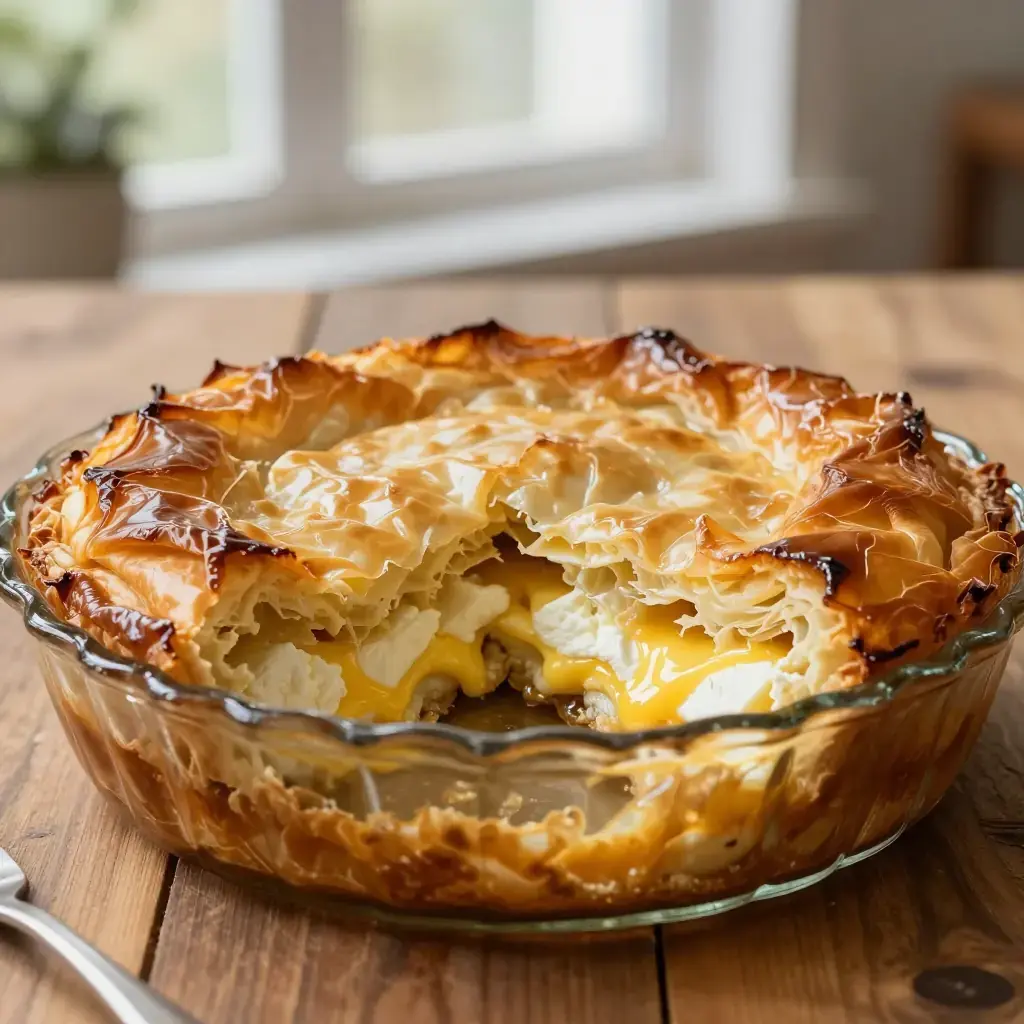 Gibanica is Serbia's most iconic baked dish — a lavish, layered pie of hand-scrunched filo pastry, fresh white cheese, and eggs that has graced every celebration table and Sunday family lunch for centuries. Unlike tidily layered börek, Gibanica uses a distinctive technique of crumpling the filo sheets into loose rosettes that create irregular pockets of air and cheese, resulting in a textural contrast between the crisp golden top and the creamy, custardy interior. It is simultaneously humble and spectacular.