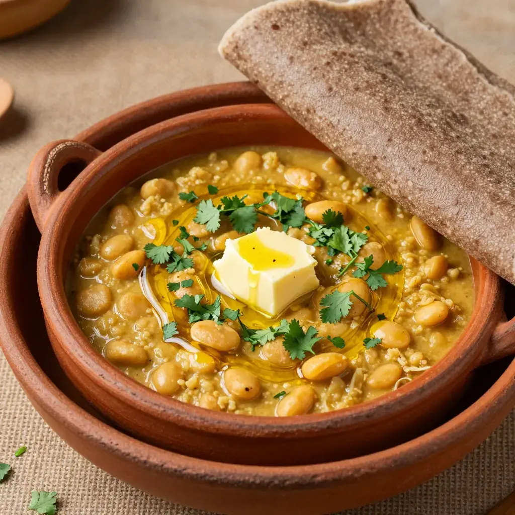 # Ye'ful Medames Alicha (የፉልመደምስ አልቻ) While the well-known Habesha Ful Medames is spiced with berbere and boldly seasoned, this gentler alicha (mild) version hails from the milder spice traditions of southern Ethiopia and the Gurage community, where fava beans are slowly cooked with turmeric, fresh ginger, and niter kibbeh (spiced clarified butter) rather than hot pepper pastes. The result is a deeply comforting, golden-hued bean dish that is both an everyday weekday supper and a fitting centrepiece for a full vegetarian fasting spread on Tsom (Orthodox fasting days). Serves: 4 ## Ingredients - 500g (1 lb 2 oz) dried small fava beans (ful), soaked overnight and drained - 2 tbsp (30ml) niter kibbeh (Ethiopian spiced clarified butter) or ghee - 1 large onion, finely diced - 4 cloves garlic, minced - 30g (1 oz) fresh ginger, grated - 1.5 tsp (4g) ground turmeric - 1 tsp (3g) ground cumin - ½ tsp (2g) ground coriander - ½ tsp (2g) white pepper - 1 litre (4 cups) water or vegetable stock - 1 tsp (5g) salt, or to taste - 2 tbsp (30ml) fresh lemon juice - Large handful fresh coriander, chopped - 4 tbsp (60ml) good olive oil or extra niter kibbeh, to finish ## Instructions 1. Place the soaked and drained fava beans in a large pot. Cover with the water or stock and bring to a boil. Skim any foam. Reduce heat and simmer 45–60 minutes until very tender but not completely collapsed. Drain, reserving the cooking liquid. 2. In the same pot, melt the niter kibbeh over medium heat. Add the onion and cook 12–15 minutes, stirring regularly, until very soft and golden — this slow-cooked onion base is fundamental. 3. Add the garlic and ginger, cook 2 minutes. Add the turmeric, cumin, coriander, and white pepper. Stir 1 minute until fragrant. 4. Return the cooked fava beans to the pot. Add enough reserved cooking liquid to just cover. Stir well and simmer, partially covered, 20–25 minutes until the beans begin to break down and the broth thickens. Mash some beans roughly against the pot wall with a wooden spoon to create a creamy texture while leaving plenty whole. 5. Season with salt and stir in the lemon juice. Taste and adjust. 6. Serve in bowls drizzled with olive oil or a spoonful of niter kibbeh, scattered with fresh coriander. Accompany with injera or crusty bread for scooping. **Cook's Notes:** Niter kibbeh is infused clarified butter made with onion, garlic, ginger, fenugreek, and Ethiopian spices — it is what gives the dish its characteristic depth. You can make it ahead or buy it at Ethiopian grocery stores. The overnight soak is essential for dried fava beans; canned beans can be substituted by adding them at step 4 and reducing simmering time to 10 minutes.Images