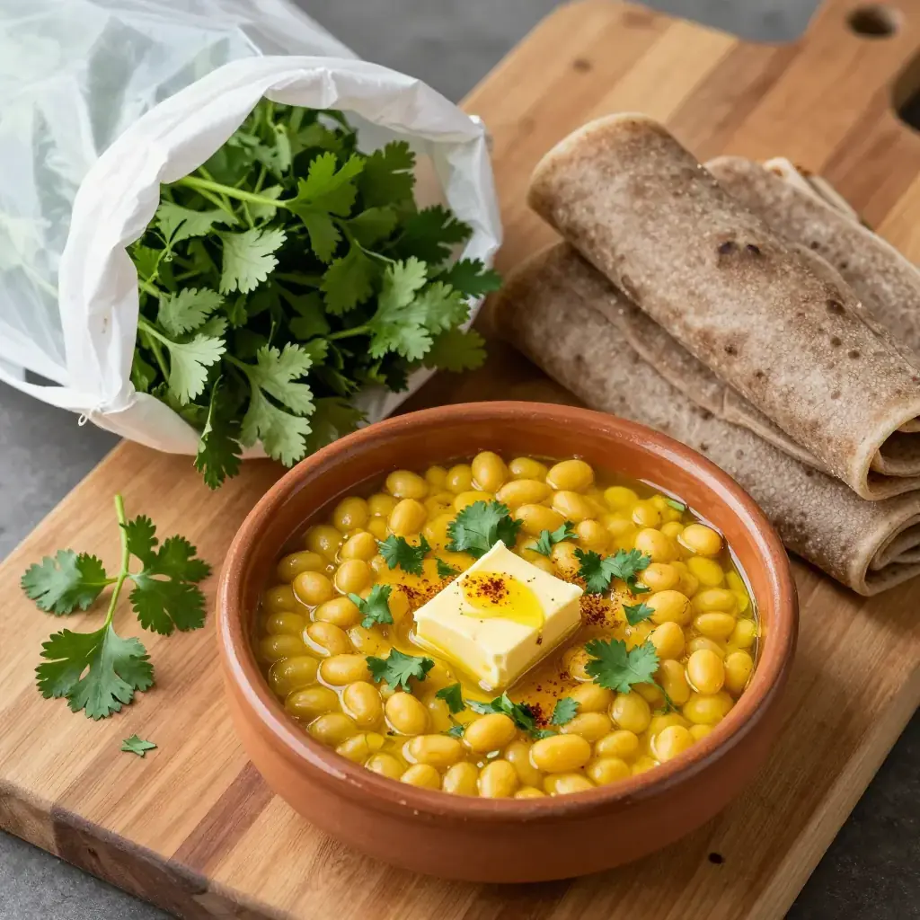 While the well-known Habesha Ful Medames is spiced with berbere and boldly seasoned, this gentler alicha (mild) version hails from the milder spice traditions of southern Ethiopia and the Gurage community, where fava beans are slowly cooked with turmeric, fresh ginger, and niter kibbeh (spiced clarified butter) rather than hot pepper pastes. The result is a deeply comforting, golden-hued bean dish that is both an everyday weekday supper and a fitting centrepiece for a full vegetarian fasting spread on Tsom (Orthodox fasting days).