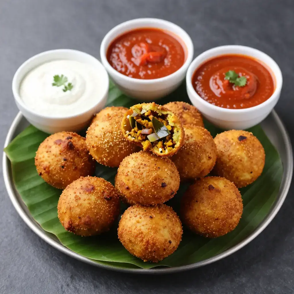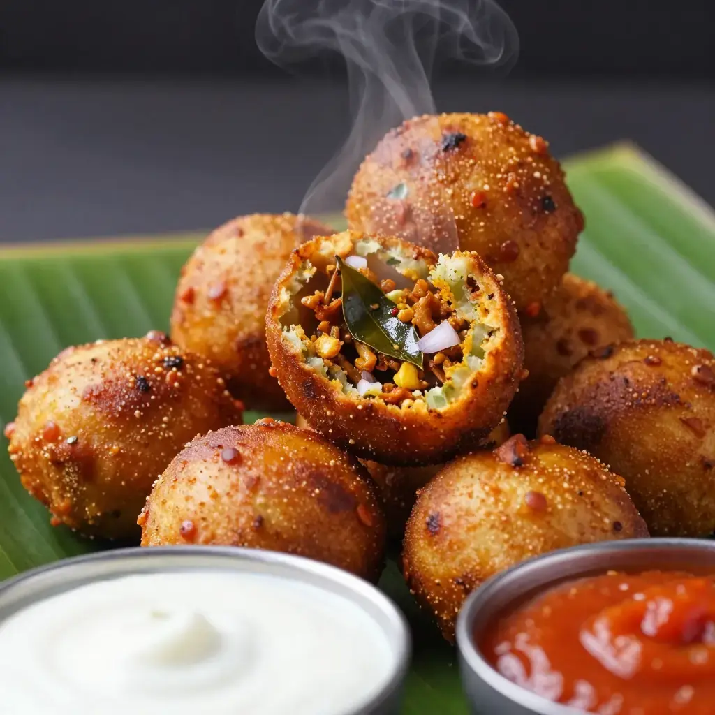 Cook's Notes: The coarseness of the grind is crucial — over-blending makes the vada dense rather than crunchy. Some cooks add a small amount of raw grated beetroot or carrot for colour and sweetness. Masala vada can be kept warm in a low oven (100°C) for up to 30 minutes without losing too much crunch.