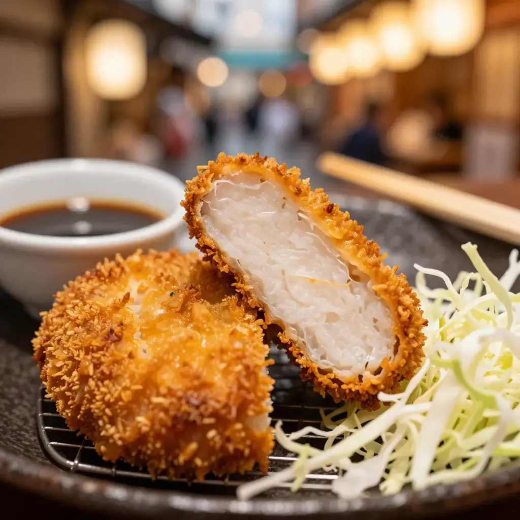 A beloved yoshoku (Western-influenced Japanese) creation born in Tokyo's Meiji-era butcher shops and yōshoku restaurants, menchi katsu encases a juicy, well-seasoned minced beef and pork patty in a crackling golden panko crust. Today it is the quintessential depachika (department store basement) snack and a staple of late-night shotengai (shopping street) stalls.