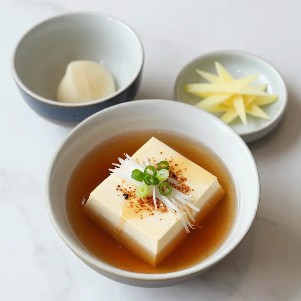 Cook's Notes: The contrast of the crisp starch shell and the trembling, creamy interior is the soul of this dish. Use the freshest silken tofu you can find. Kombu-only dashi makes this vegetarian.