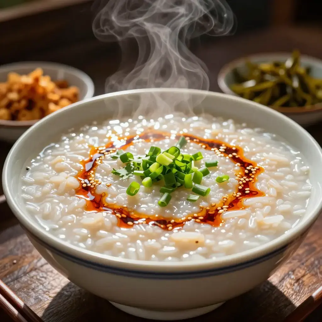 Soft rice congee from Dali, home of the Bai ethnic minority, is the cornerstone of breakfast across the Yunnan plateau. Ruan mi — literally "soft rice" — uses a short-grain purple or white rice cooked to a porridge consistency, served with a forest of condiments: pickled vegetables, crispy shallots, sesame paste, and the aromatic dried herbs of the mountain foothills.
