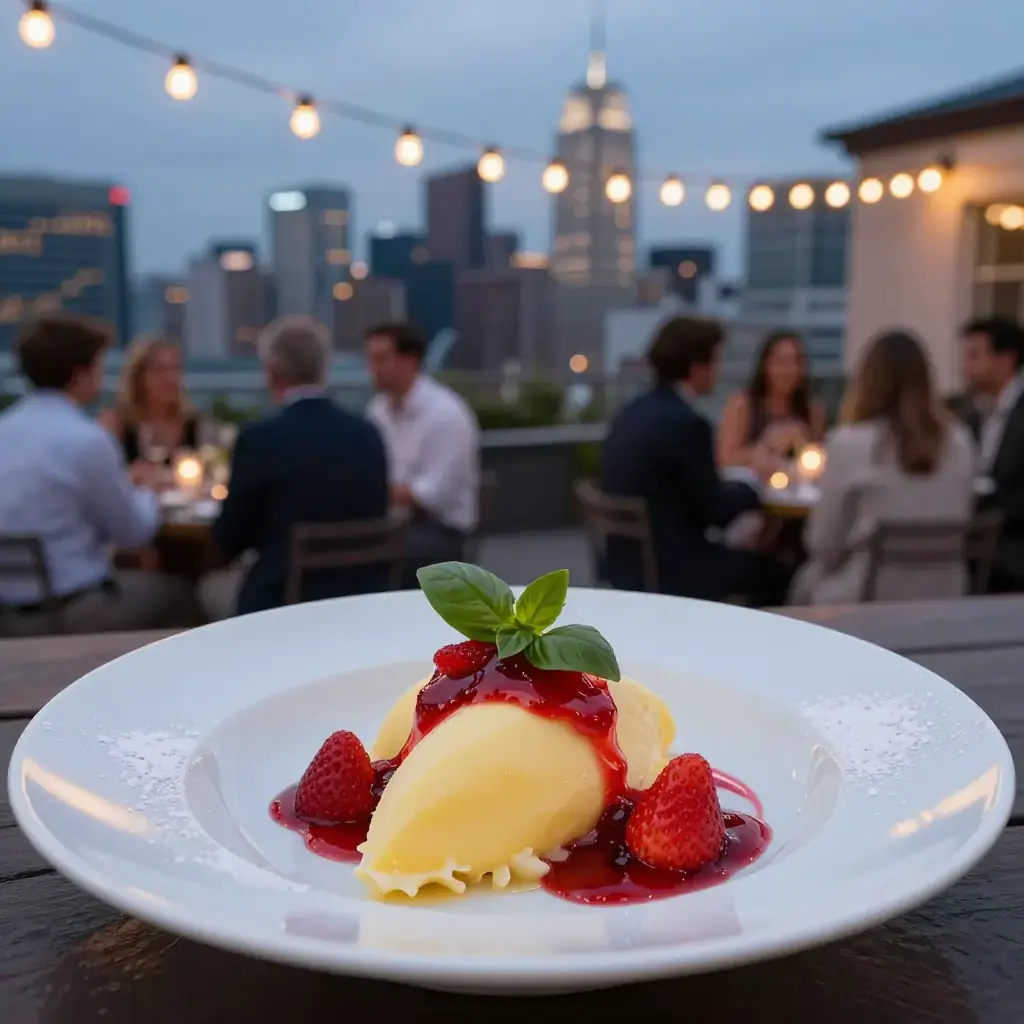 Semifreddo — literally "half-cold" in Italian — is a silky frozen mousse that sits between ice cream and mousse in texture, needing no ice cream machine. This modern Italian interpretation pairs a cloud-light lemon cream with macerated summer strawberries, a refreshing riff on the classic semifreddo technique that has become a fixture in contemporary trattorie across northern Italy.