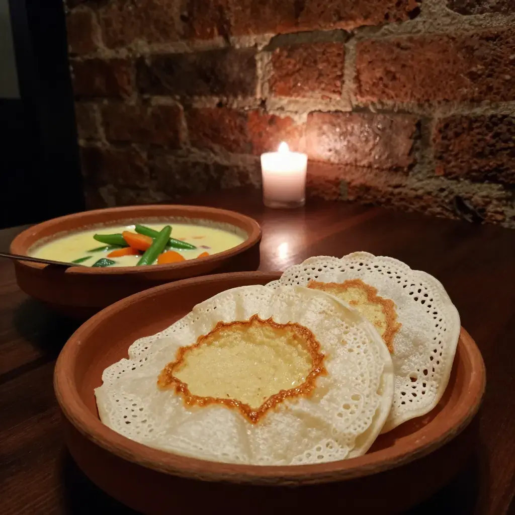 Appam are lacy, bowl-shaped rice and coconut pancakes from Kerala, fermented overnight to develop a gentle tang. Their thin, crispy edges and soft, spongy centres make them the perfect vessel for a fragrant coconut milk vegetable stew — one of South India's most celebrated morning meals.