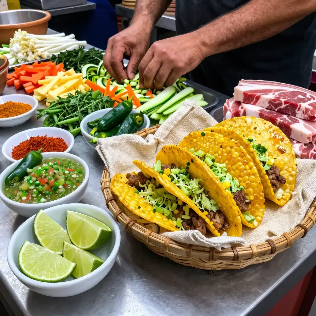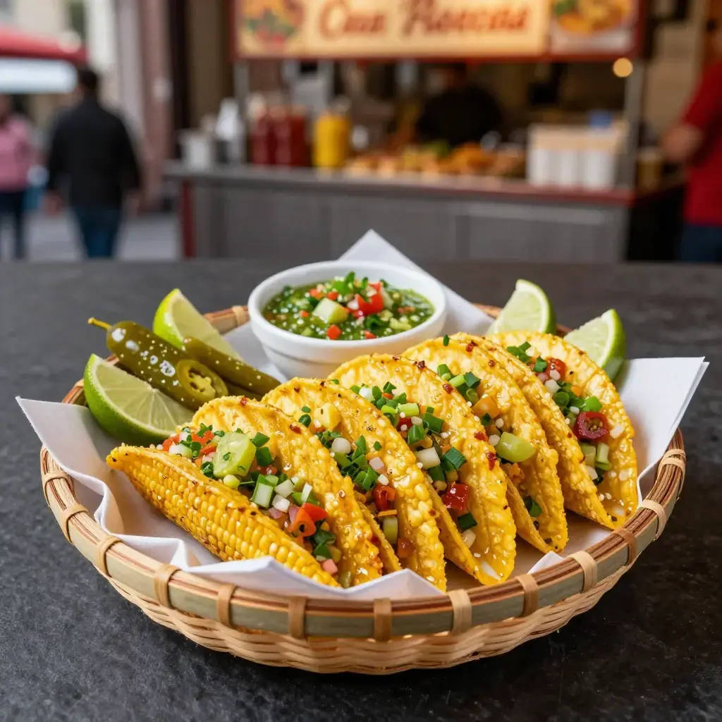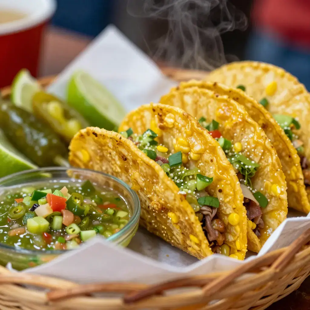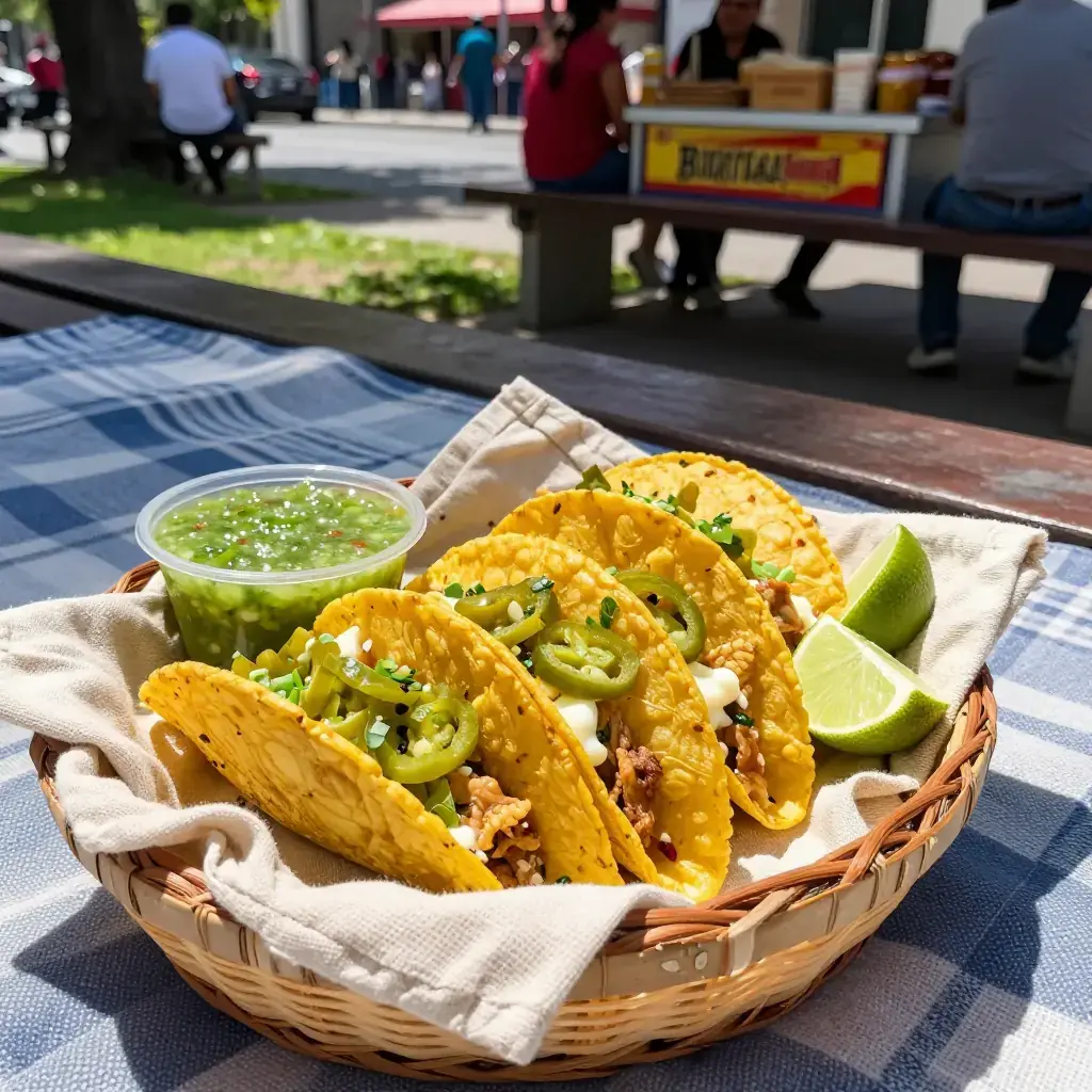# Tacos de Canasta Tacos de Canasta — basket tacos — are a Mexico City institution. Soft, lard-glazed tacos stuffed with mashed potato, chicharrón in salsa or refried beans are packed tightly into a basket lined with plastic and cloth, where they steam in their own heat for hours, becoming irresistibly soft and saturated. Vendors cycle through the city from the early hours, a fixture of the pre-dawn and late-night food landscape. Serves: 4 ## Ingredients **For the tacos** - 20 small corn tortillas (12cm / 5 inch) - 2 tbsp (30g) lard or neutral oil, for steaming **Potato and chorizo filling** - 400g (14 oz) potatoes, peeled and boiled until soft - 100g (3½ oz) Mexican chorizo, skin removed - 2 tbsp (30ml) neutral oil - ½ small white onion, minced - Salt to taste **Bean filling** - 400g (14 oz) cooked or tinned black or pinto beans - 2 tbsp (30g) lard or oil - ½ white onion, minced - 2 cloves garlic, minced - Salt to taste **To serve** - Salsa verde (tomatillo salsa) - Pickled jalapeños - Finely shredded cabbage - Lime wedges ## Instructions 1. **Potato and chorizo filling:** Crumble chorizo into a pan and fry over medium heat until cooked, 4–5 minutes. Remove, leaving fat in the pan. Fry onion until soft, 3 minutes. Add boiled potatoes and mash roughly into the pan with a fork, incorporating the chorizo. Season with salt. Keep warm. 2. **Bean filling:** Fry onion and garlic in lard until soft, 4 minutes. Add beans and mash coarsely. Season with salt. Add a splash of bean cooking water if too dry. 3. Warm tortillas on a dry comal or skillet until pliable, about 20–30 seconds per side. 4. Fill each tortilla with 2–3 tbsp of either filling. Fold in half. Arrange the folded tacos tightly upright in a heavy-based pot or Dutch oven, alternating fillings. Pour 2 tbsp of melted lard or oil over the top of the tacos; this will trickle down, basting them as they steam. 5. Place a folded cloth or parchment paper over the tacos, put the lid on tightly, and steam on the lowest possible heat 20–30 minutes. The tacos will soften and the exteriors will become lightly glazed. 6. Serve directly from the pot with salsa verde, pickled jalapeños, cabbage and lime. **Cook's Notes:** The beauty of tacos de canasta is in the steaming — it transforms ordinary tortillas and simple fillings into something greater than the sum of their parts. The lard glaze is key. Traditionally they are wrapped in cloth and carried in a large wicker basket, staying warm for hours. They are best eaten within 2 hours of steaming.Images