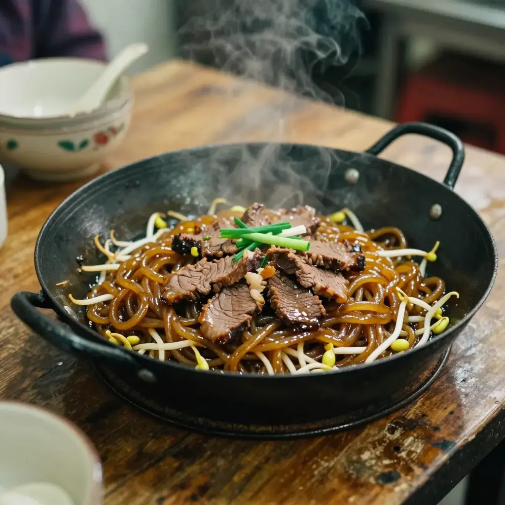 Gon Chow Ngau Ho — literally "dry-fried beef flat rice noodles" — is the undisputed benchmark of a Cantonese wok master. Served at late-night cha chaan teng across Hong Kong and Guangdong, this dish demands wok hei: the smoky, breath-of-the-wok flavour produced only by fierce heat and confident tossing. A great plate is dry, not greasy, with silky beef, tender noodles, and the perfume of charred wok iron.
