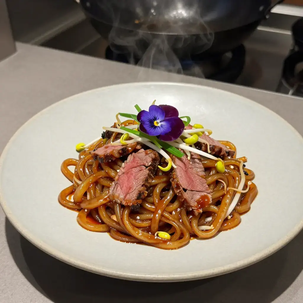 # Gon Chow Ngau Ho Gon Chow Ngau Ho — literally "dry-fried beef flat rice noodles" — is the undisputed benchmark of a Cantonese wok master. Served at late-night cha chaan teng across Hong Kong and Guangdong, this dish demands wok hei: the smoky, breath-of-the-wok flavour produced only by fierce heat and confident tossing. A great plate is dry, not greasy, with silky beef, tender noodles, and the perfume of charred wok iron. Serves: 4 ## Ingredients - 500g (1 lb) fresh wide flat rice noodles (ho fun / shahe fen), separated - 300g (10 oz) beef sirloin or flank, sliced 3mm thin against the grain **Beef marinade:** - 1 tbsp light soy sauce - 1 tsp dark soy sauce - 1 tsp bicarbonate of soda (baking soda) - 1 tsp cornstarch - 1 tsp sesame oil - 1 tsp neutral oil **Sauce:** - 2 tbsp light soy sauce - 1 tbsp dark soy sauce - 1 tsp sugar - 1 tbsp Shaoxing rice wine **Other:** - 3 tbsp (45ml) neutral oil, divided - 2 stalks spring onion (scallion), cut into 5cm (2-inch) lengths - 100g (3.5 oz) bean sprouts - 2 eggs, beaten (optional, for richness) ## Instructions 1. Marinate the beef slices in all marinade ingredients for 20 minutes at room temperature. Mix the sauce ingredients together in a small bowl and set aside. 2. If your ho fun noodles are refrigerated, allow them to come to room temperature and gently separate each sheet into ribbons. Cold noodles break apart in the wok. 3. Heat a wok over the highest flame possible until smoking. Add 2 tbsp of oil and sear the beef in a single layer for 30–45 seconds per side until just cooked through and lightly charred. Remove and set aside. 4. Wipe the wok clean and reheat until smoking again. Add the remaining 1 tbsp oil. Add the noodles in a single layer and leave undisturbed for 30 seconds to char slightly. 5. If using eggs, push the noodles to one side, pour the beaten egg into the empty space, and scramble briefly before folding into the noodles. 6. Drizzle the sauce over the noodles and toss everything together with large, confident scooping motions for 1–2 minutes. Add the beef back in. 7. Add the bean sprouts and spring onions, toss for a further 30 seconds, and plate immediately. **Cook's Notes:** Never crowd the wok — this recipe is best made in two batches for a home stove, which lacks the BTU of a commercial burner. A carbon-steel wok or cast-iron skillet gives better char than non-stick. Dark soy sauce provides colour; do not skip it.Images