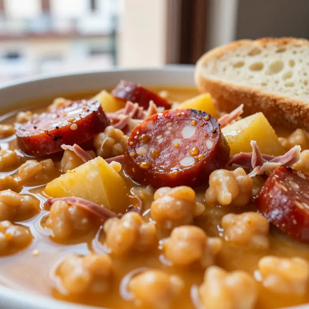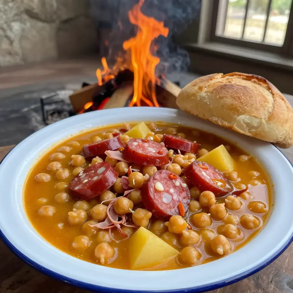 Potaje — a hearty bean stew — forms the backbone of Cuban home cooking, and the garbanzo (chickpea) version ranks among the most satisfying. Brought to Cuba by Spanish settlers, it evolved through the addition of African cooking techniques and tropical ingredients until it became distinctly Cuban: a thick, deeply flavoured pot of chickpeas braised with Spanish chorizo, smoked ham hock, and a classic sofrito that perfumes the whole kitchen. It is a meal in itself, eaten over rice or with crusty Cuban bread.
