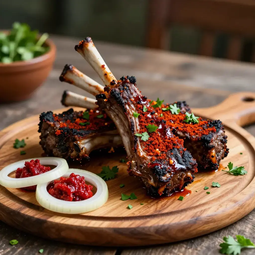 # Roštilj Jagnjećih Rebara Grilled lamb ribs are the centrepiece of the Serbian roštilj tradition, where families gather around open charcoal fires for long, sociable weekend meals. The marinade of garlic, rosemary, and ajvar-style paprika paste gives the ribs a deeply aromatic crust while the fat bastes the meat naturally over the coals. Serves: 6 ## Ingredients - 1.8 kg (4 lb) lamb ribs, cut into individual bones - 6 cloves garlic, minced - 3 tbsp (45 ml) sunflower oil - 2 tbsp (30 ml) red wine vinegar - 1 tbsp sweet paprika - 1 tsp hot paprika - 2 sprigs fresh rosemary, leaves stripped and chopped - 1 small bunch flat-leaf parsley, roughly chopped - 1 tsp salt - 1/2 tsp black pepper ## Instructions 1. Combine garlic, oil, vinegar, both paprikas, rosemary, salt, and pepper in a large bowl to form a paste. Toss the ribs in the marinade, coating well. Cover and refrigerate for at least 4 hours, ideally overnight. 2. Prepare a charcoal grill for direct medium-high heat. Allow coals to turn white-grey before cooking. 3. Grill ribs in a single layer, turning every 4–5 minutes, for 20–25 minutes total until nicely charred on the outside and cooked through with no pink remaining. 4. Rest the ribs for 5 minutes on a board, then scatter generously with fresh parsley. 5. Serve alongside ajvar, raw onion slices, and crusty white bread. **Cook's Notes:** Individual lamb ribs cook faster than a whole rack — watch for flare-ups from the dripping fat. If using a gas grill, add a handful of soaked wood chips for smokiness. Leftovers reheat well wrapped in foil in a 180°C (350°F) oven for 10 minutes.Images