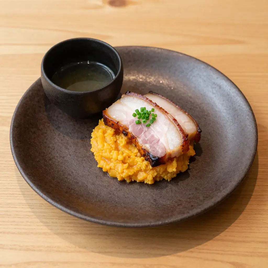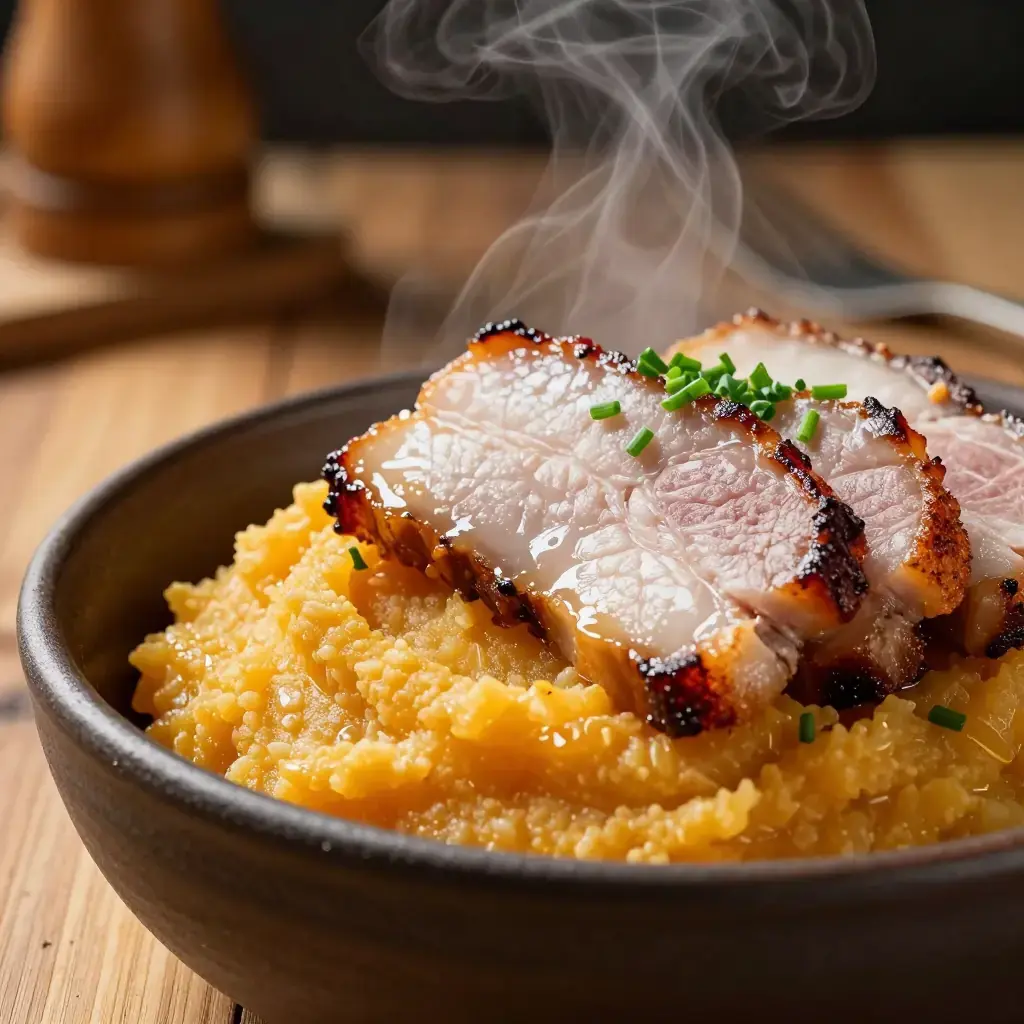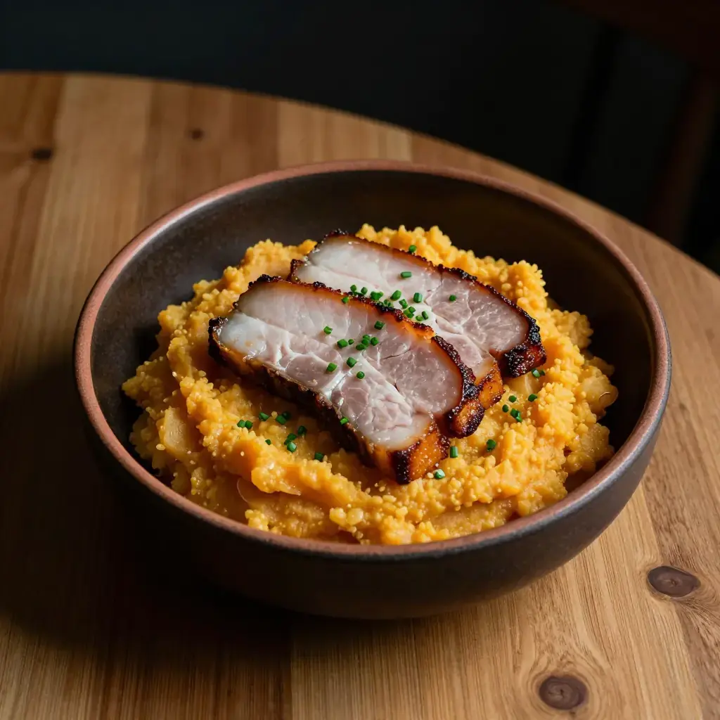 Rotmos med Fläsk is the Swedish farmhouse classic of golden root vegetable mash served alongside thick slices of slow-simmered smoked pork belly. The mash — a blend of turnip, carrot, and potato — is given a nutty warmth by white pepper and butter, while the smoky pork provides deep savoury contrast. It is a cornerstone of the Swedish autumn and winter table.