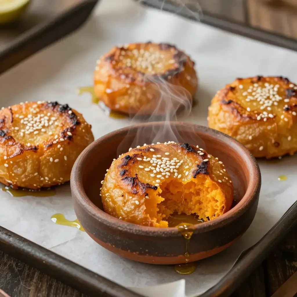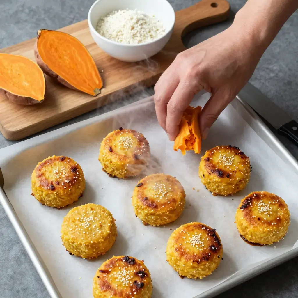 # Dongbei Kaodi Gua Bing Across the windswept plains of Heilongjiang and Jilin, vendors sell hand-patted sweet potato cakes baked on cast-iron griddles — a thrifty breakfast staple that turns the abundant local sweet potato harvest into golden, slightly crisp rounds with a pillowy interior. Serves: 4 ## Ingredients - 500g (1 lb 2 oz) orange sweet potatoes, peeled and cubed - 150g (5.5 oz / 1 cup) glutinous rice flour - 2 tbsp (25g) sugar - 1 tbsp (15ml) neutral oil, plus extra for brushing - 1/4 tsp (1g) salt - White sesame seeds, for sprinkling ## Instructions 1. Steam the sweet potato cubes over high heat for 15–18 minutes until very tender. Transfer to a large bowl and mash thoroughly while still hot. 2. Let the mash cool for 5 minutes, then add the glutinous rice flour, sugar, salt, and oil. Mix and knead into a soft, pliable dough — it should hold its shape without sticking. Add 1–2 tbsp water if it feels crumbly. 3. Divide the dough into 8 equal portions. Roll each into a ball, then gently press into a round patty about 1 cm (0.4 in) thick. 4. Preheat oven to 200°C (400°F) and line a baking sheet with parchment. Brush both sides of each patty with oil. Sprinkle sesame seeds on top. 5. Bake for 20 minutes, flip carefully, then bake a further 10–12 minutes until both sides are golden with slightly crisp edges. 6. Serve warm as a breakfast with congee, or as a snack with tea. **Cook's Notes:** Glutinous rice flour (not regular rice flour) is essential for the chewy interior. Leftover cakes reheat beautifully in a dry pan for 2 minutes per side. A teaspoon of black sesame seeds mixed in the dough adds visual interest.Images