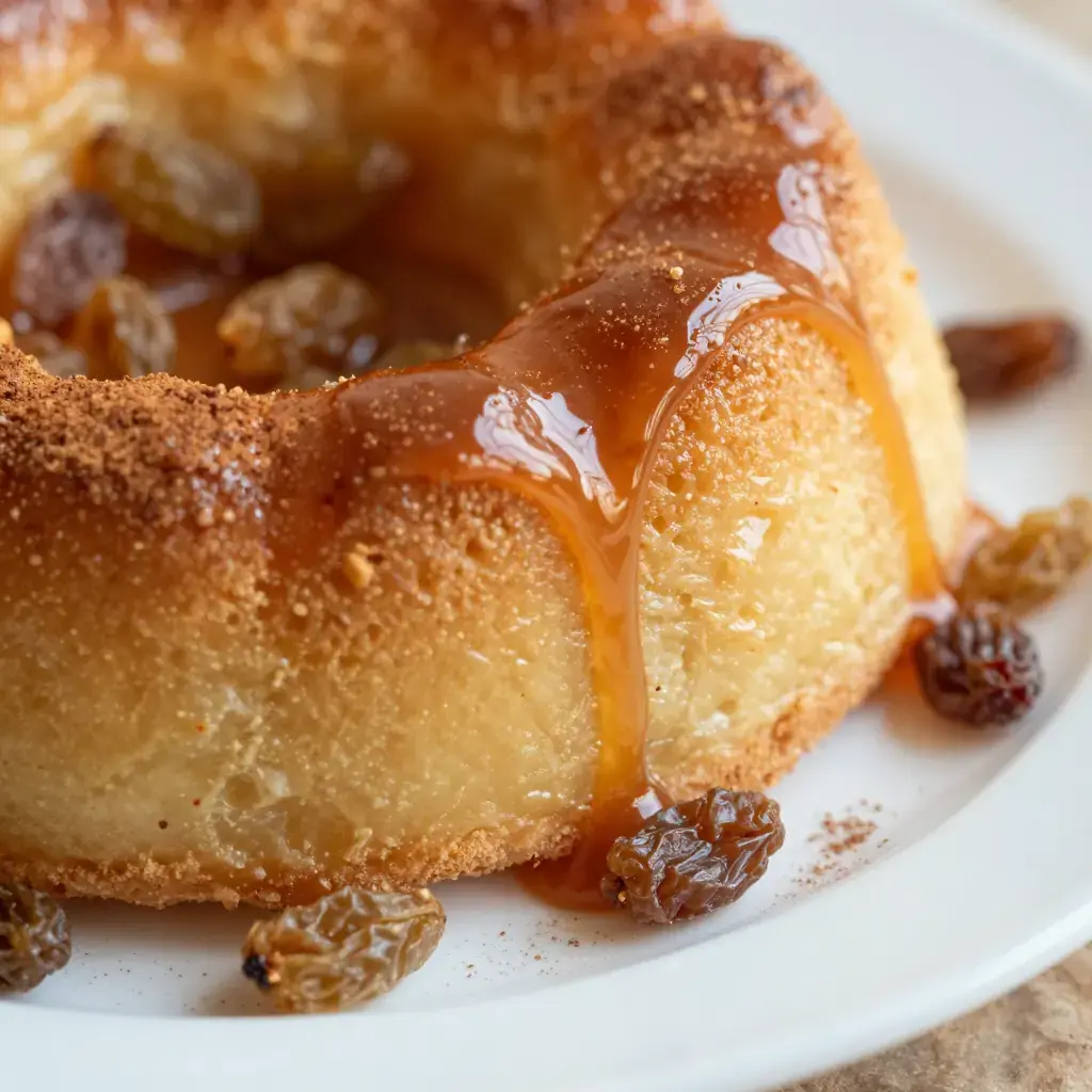 - Mix the soaked bread with the raisins and pour into the caramel-lined baking dish. Pour the custard mixture evenly over the top, pressing down to ensure absorption. Allow to rest for 10 minutes.