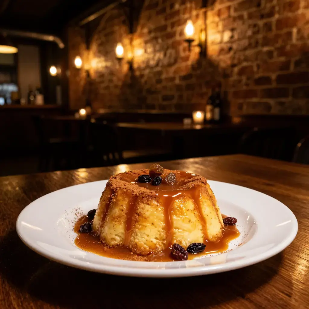 # Pudin de Pan Cubano Pudin de pan is Cuba's answer to bread pudding — a colonial-era dessert born from the need to use stale Cuban bread, enriched with egg custard, warm spices and a generous pour of dark rum, then baked until the top caramelises. It remains a beloved Sunday dessert across the island and among Cuban diaspora communities. Serves: 6 ## Ingredients ### For the caramel - 150g (¾ cup) caster sugar - 3 tbsp (45ml) water ### For the pudding - 400g (14 oz) stale Cuban bread or French baguette, torn into 3cm pieces - 500ml (2 cups) whole milk - 200ml (¾ cup) sweetened condensed milk - 4 eggs - 60ml (¼ cup) dark rum - 1½ tsp vanilla extract - 1 tsp ground cinnamon - ¼ tsp freshly grated nutmeg - 80g (¼ cup) raisins - 30g (2 tbsp) unsalted butter, melted, plus extra for the dish ## Instructions 1. Preheat the oven to 180°C (350°F). For the caramel, combine the sugar and water in a heavy saucepan over medium heat. Do not stir. Cook for 8–10 minutes until amber. Pour quickly into a buttered 23cm (9 inch) baking dish, tilting to coat the base. Allow to set. 2. Soak the torn bread in the whole milk for 20 minutes, then squeeze lightly — the bread should absorb the liquid but not be dripping. 3. Whisk together the eggs, condensed milk, rum, vanilla, cinnamon and nutmeg. Add the melted butter and stir to combine. 4. Mix the soaked bread with the raisins and pour into the caramel-lined baking dish. Pour the custard mixture evenly over the top, pressing down to ensure absorption. Allow to rest for 10 minutes. 5. Bake for 40–45 minutes until set and the top is golden brown with caramelised spots. A skewer inserted in the centre should come out clean. 6. Allow to cool for 15 minutes before inverting onto a serving plate so the caramel drizzles down. Serve warm or at room temperature. **Cook's Notes:** Cuban bread (pan cubano) has a thin, crispy crust and a light, open crumb perfect for absorbing custard. Do not skip resting the assembled pudding — it ensures the custard penetrates the bread fully. Leftovers reheat well in a low oven.Images