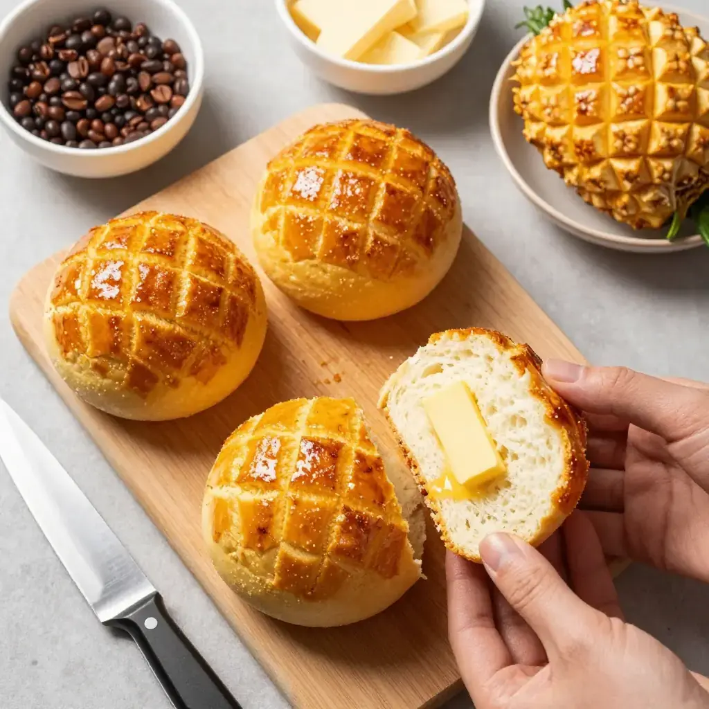 Despite the name, Bolo Bao contains no pineapple — the name refers to the golden, crackled sugar topping that resembles a pineapple's skin. These fluffy, slightly sweet buns are an icon of Hong Kong's cha chaan teng breakfast culture, best eaten warm from the oven, split, and filled with a cold slab of butter.