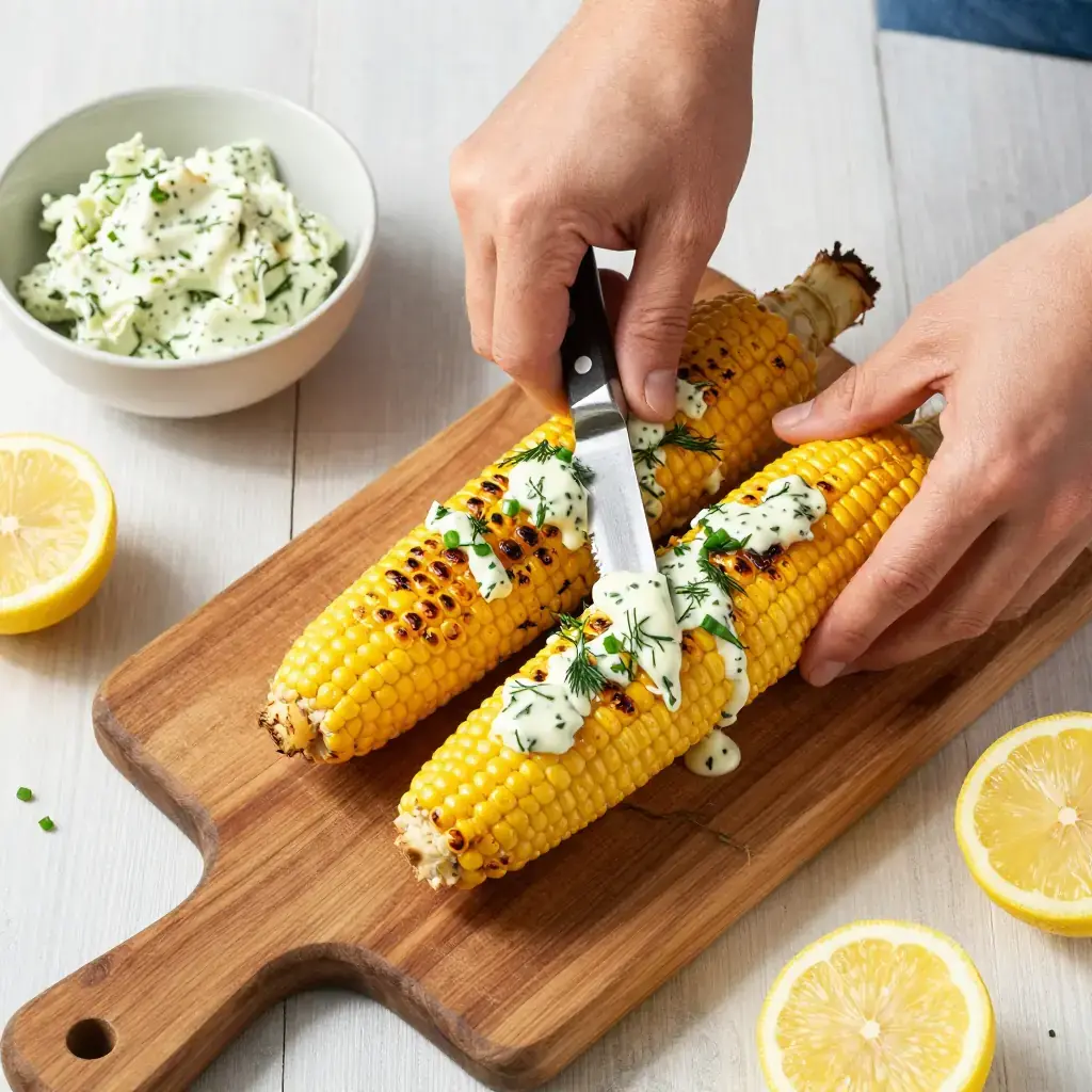 - Peel back husks, spread generously with herb butter, and return to the grill for 3-4 minutes to caramelize.