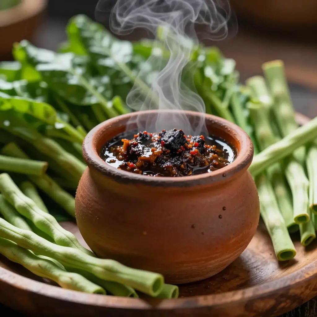 Nam prik — Thailand's vast family of chilli dipping pastes — predates recorded Thai history, but the pla ra (fermented freshwater fish) version is among the most ancient, rooted in inland communities along the Mekong where salt-preserved fish provided year-round protein. It is still the centrepiece of Isan and central Thai home meals, served with an array of fresh, blanched, and fried vegetables for dipping.