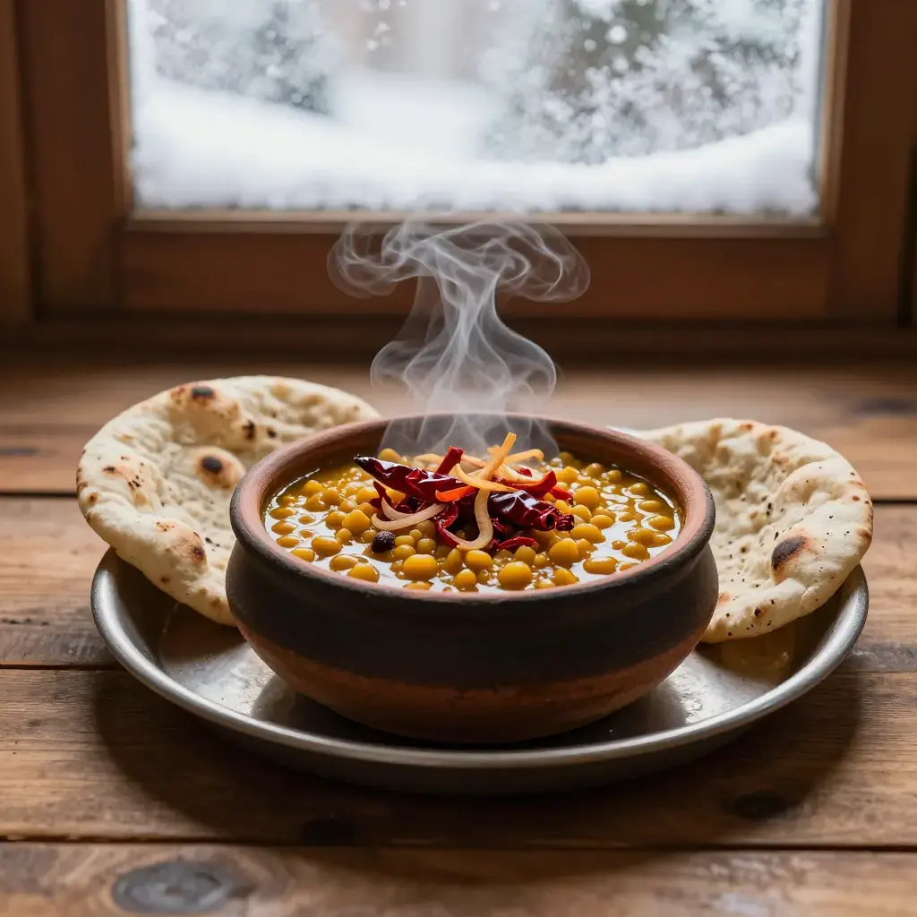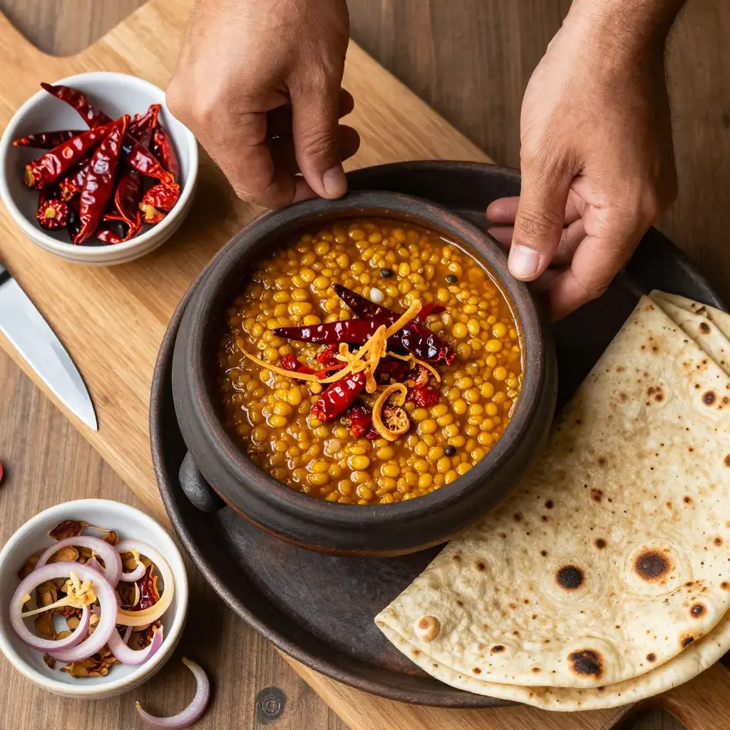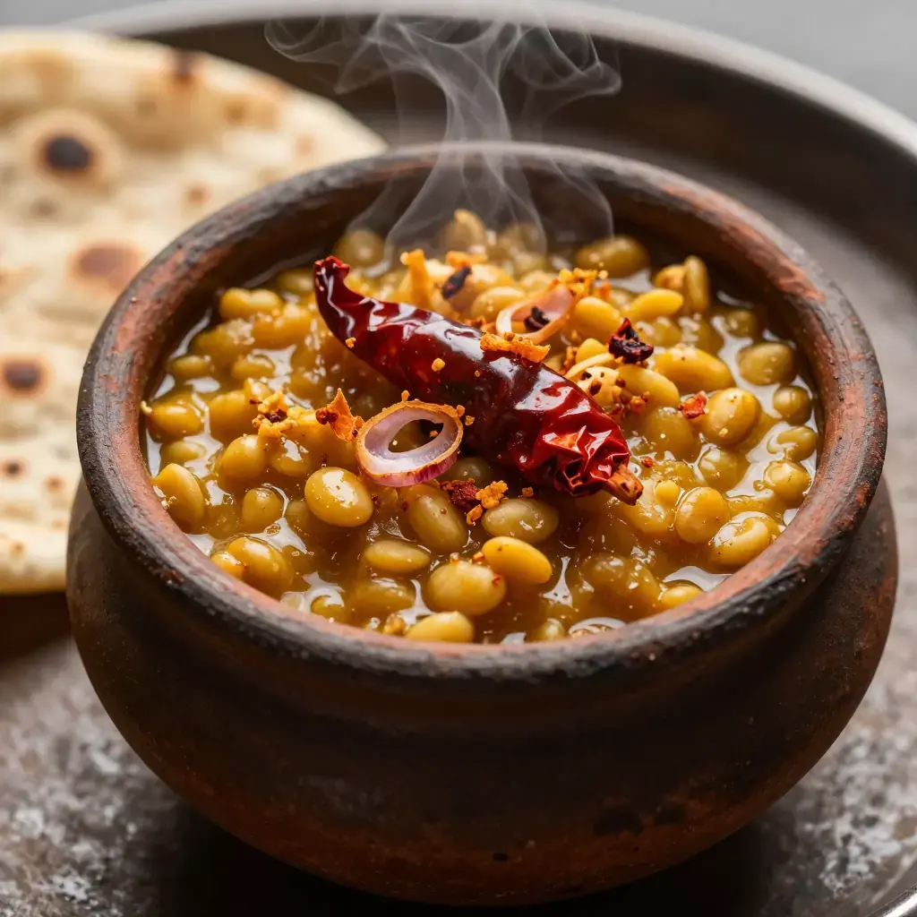 Cook's Notes: The dhungar smoke step is optional but transforms the dish with a campfire quality that honours the Banjara tradition. Moth beans are smaller and firmer than most lentils — if unavailable, whole masoor lentils work well but need less soaking time.