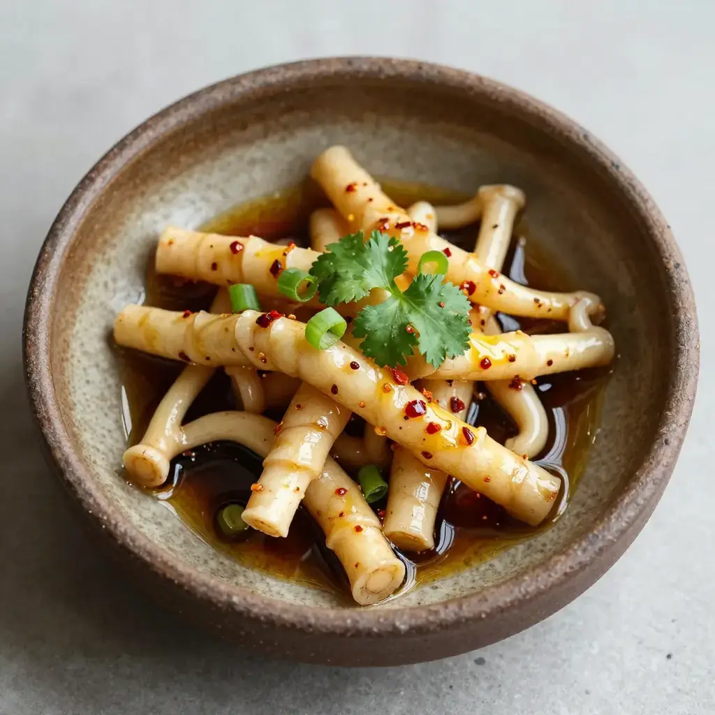 Zhe er gen — the pungent, crunchy root of the houttuynia plant — is one of the most distinctive and divisive ingredients in Hunan and southwest Chinese cooking. Raw and lightly dressed with chilli, vinegar, and masses of fresh herbs, it is eaten as a cold appetiser that awakens the palate with its sharp, fishy-earthy fragrance.