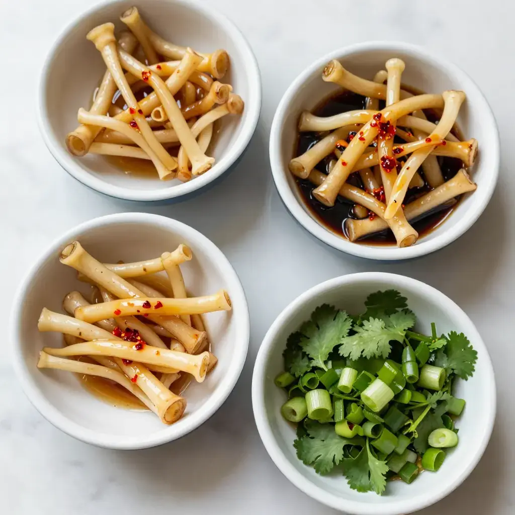 - Combine the zhe er gen, spring onions, coriander, and crumbled dried chillies in a mixing bowl.