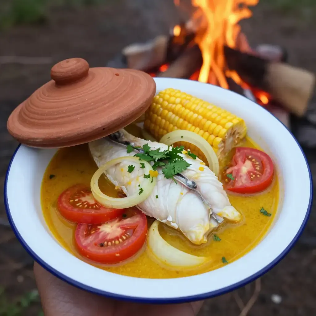 Sudado — meaning 'sweated' — is one of Peru's most ancient coastal preparations. A whole fish or fillets are steamed over a fragrant broth of aji amarillo, tomato, and chicha de jora (fermented corn beer), absorbing flavour from the steam rather than submerging in liquid. The result is extraordinarily delicate flesh perfumed with the floral heat of the aji. Along the Lima coast it is eaten straight from the pot with choclo corn and sweet potato.