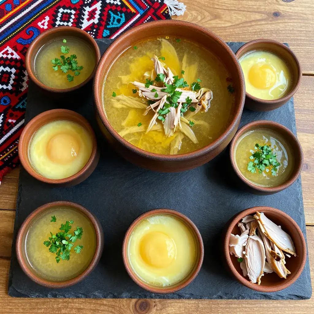 Chikhirtma is Georgia's silky, tangy chicken soup — thickened with egg yolks and vinegar rather than flour, giving it a golden, velvet texture unlike any European broth. It is a favourite hangover remedy and festive meal alike, traditionally served at supra alongside churchkhela and mchadi corn bread. The whole dish comes together in under 30 minutes.