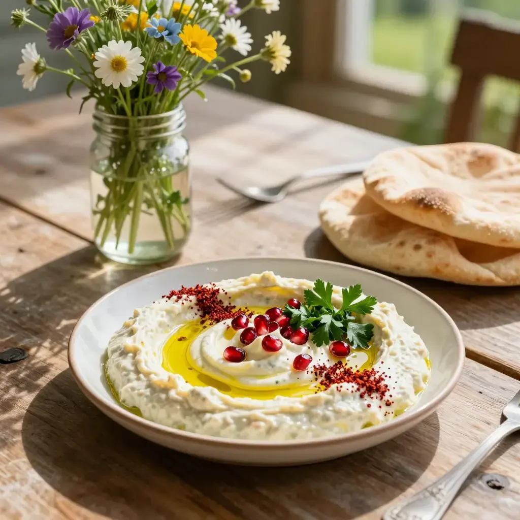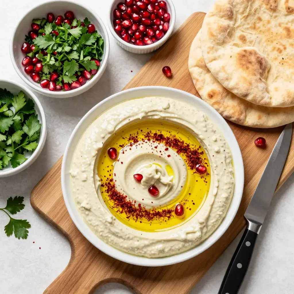 Moutabal is Lebanon's smoky, seductive answer to baba ghanoush — charred whole aubergines blended with creamy tahini, lemon, and garlic into a silky, deeply flavoured dip. Unlike the simpler baba ghanoush, moutabal relies on the tahini-sesame backbone for richness, making it thicker, creamier, and more intensely flavoured.