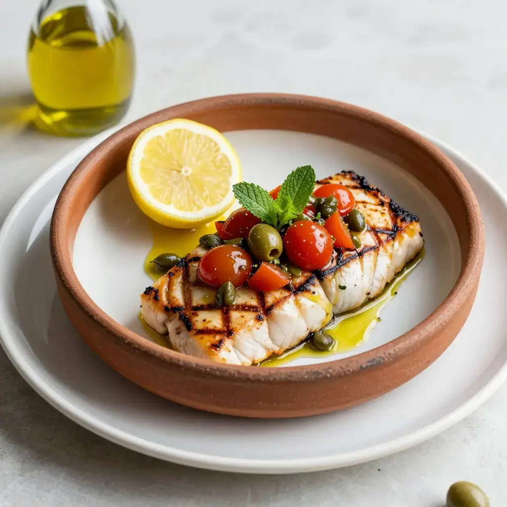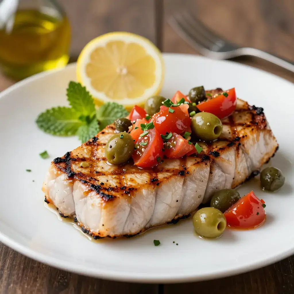 # Pesce Spada alla Siciliana Swordfish has been central to Sicilian cuisine for millennia — the annual swordfish hunt off the Strait of Messina is a tradition documented by ancient Greek writers. This preparation, with its bold combination of capers, green olives, cherry tomatoes, and mint, reflects the Arab-Norman culinary legacy that defines Sicilian cooking at its most distinctive. Serves: 4 ## Ingredients - 4 swordfish steaks (about 200g / 7 oz each, 2cm / 3/4 in thick) - 3 tbsp (45ml) extra-virgin olive oil, plus extra for brushing - 250g (9 oz) cherry tomatoes, halved - 80g (3 oz) green Sicilian olives, pitted and roughly chopped - 3 tbsp (45g) salted capers, rinsed and roughly chopped - 3 cloves garlic, finely sliced - Zest and juice of 1 lemon - Small bunch fresh mint, leaves torn - Small bunch flat-leaf parsley, roughly chopped - 1/2 tsp dried chilli flakes - Salt and black pepper ## Instructions 1. Make the Sicilian salsa: heat 2 tbsp olive oil in a small pan over medium heat. Add garlic and chilli flakes, cook 1 minute until fragrant. Add cherry tomatoes and cook 4-5 minutes until beginning to collapse. Remove from heat, stir in olives, capers, lemon zest and juice, mint, and parsley. Season and set aside. 2. Pat swordfish dry and brush both sides with olive oil. Season well with salt and pepper. 3. Heat a grill pan or outdoor grill to very high heat. Grill swordfish 3 minutes per side for medium — the flesh should be opaque with a light pink centre. Do not overcook or it will become dry and tough. 4. Transfer steaks to plates. Spoon the warm Sicilian salsa generously over each steak. Drizzle with remaining olive oil. 5. Serve immediately with crusty bread to soak up the juices, or alongside a simple green salad. **Cook's Notes:** Swordfish is best served slightly pink at the centre, like a medium-cooked steak. Overcooking is the most common mistake. If the steaks are very thick, finish for 2-3 minutes in a 200C (400F) oven after searing.Images