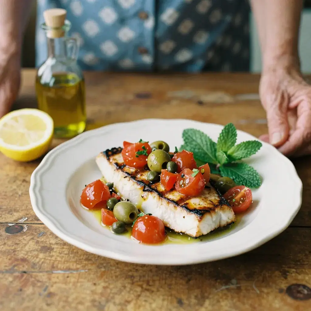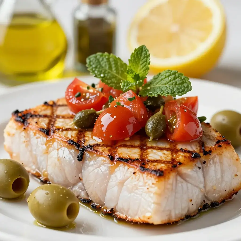 Swordfish has been central to Sicilian cuisine for millennia — the annual swordfish hunt off the Strait of Messina is a tradition documented by ancient Greek writers. This preparation, with its bold combination of capers, green olives, cherry tomatoes, and mint, reflects the Arab-Norman culinary legacy that defines Sicilian cooking at its most distinctive.
