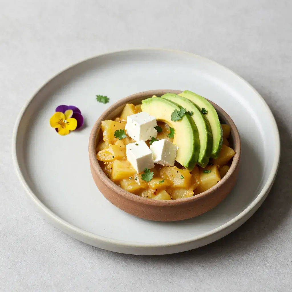 # Locro de Papa Vegetariano Locro de papa is a thick, golden potato stew from the high sierra of Ecuador and Peru, warming the Andean communities at altitudes where meat was scarce. This vegetarian version relies on the natural creaminess of Andean potatoes and fresh cheese to create a deeply satisfying one-pot meal. Serves: 4 ## Ingredients - 800g (1.8 lb) yellow-fleshed potatoes, peeled and cubed 3cm - 1 large onion, finely diced - 4 cloves garlic, minced - 2 tbsp (30ml) neutral oil - 1 tsp ground cumin - 1 tsp achiote powder (or sweet paprika) - 1/2 tsp dried oregano - 800ml (3.5 cups) vegetable stock - 100ml (scant 1/2 cup) whole milk - 150g (5 oz) queso fresco or mild feta, cubed - 1 ripe avocado, sliced - 2 tbsp fresh coriander, chopped - Salt and black pepper to taste ## Instructions 1. Heat oil in a heavy pot over medium heat. Fry onion 8 minutes until soft and golden. Add garlic, cumin, achiote, and oregano; cook 2 minutes until fragrant. 2. Add potatoes and toss to coat with spices. Pour in vegetable stock; bring to a boil. 3. Reduce heat to medium-low; simmer 20–25 minutes until potatoes are very tender and some have broken down naturally to thicken the broth. 4. Stir in milk and half the cheese; simmer gently 5 minutes. Taste and adjust salt. 5. Serve in deep bowls topped with remaining cheese, avocado slices, and fresh coriander. **Cook's Notes:** The stew should be thick like porridge — if too thin, mash a few potato pieces against the pot. Achiote gives the signature golden colour of Andean locro.Images