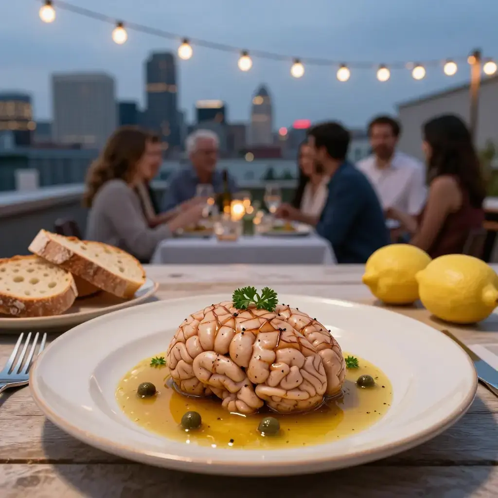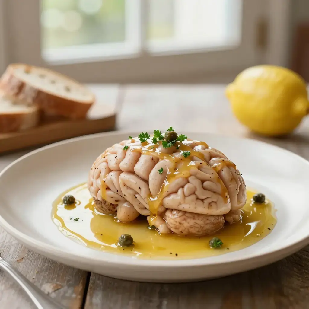 Teleći mozak — braised calf brain — is a dish of quiet Serbian tradition, once common on the tables of butchers, farmers, and households where nothing from the animal was wasted. The brain's extraordinarily delicate, creamy texture is complemented by nothing more than brown butter, lemon, and capers — a restrained preparation that reveals the ingredient in its finest form.