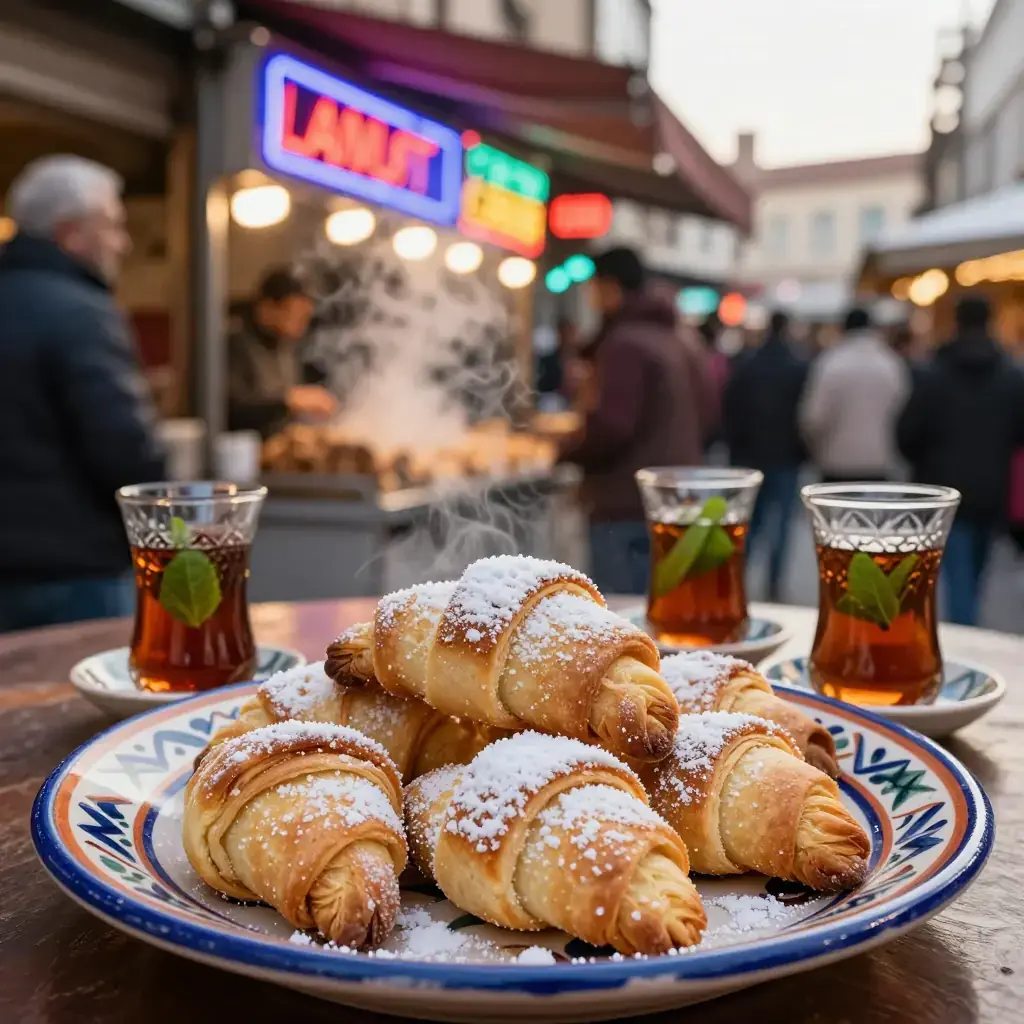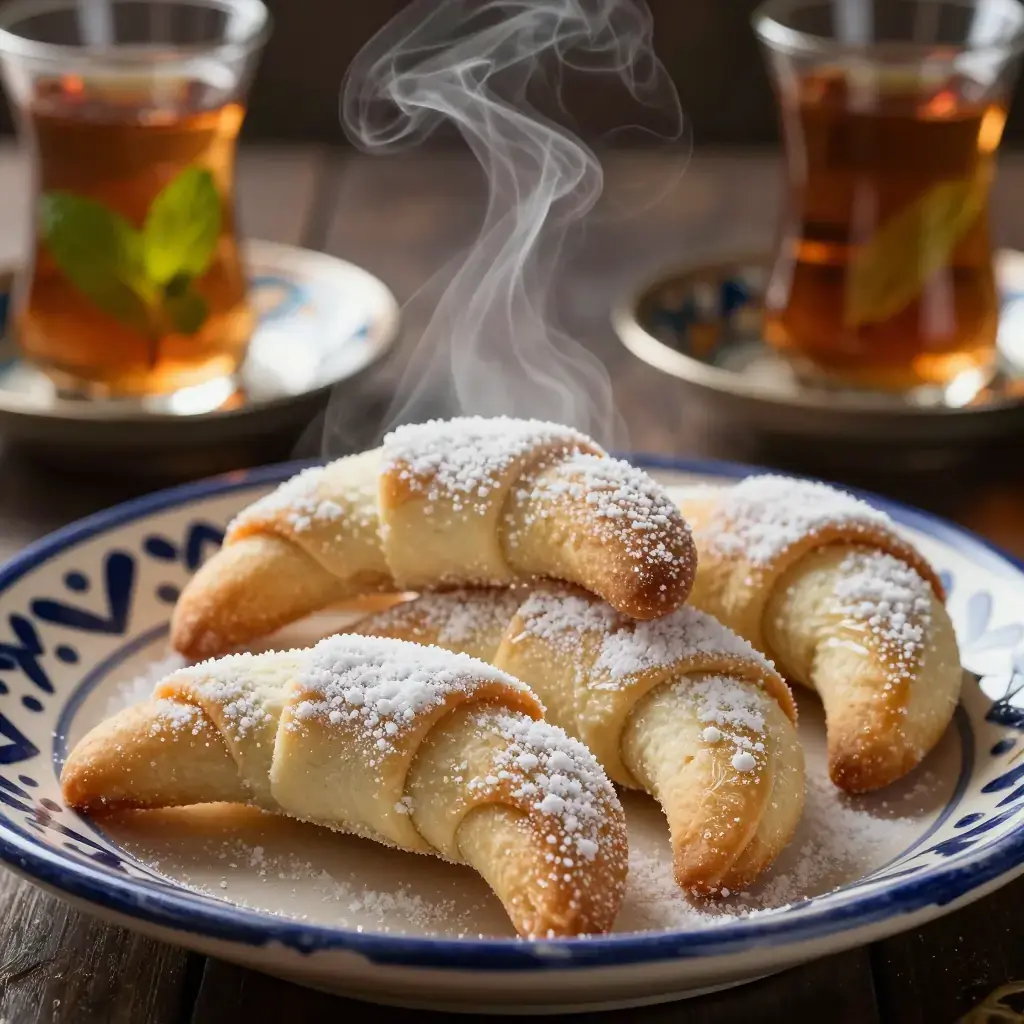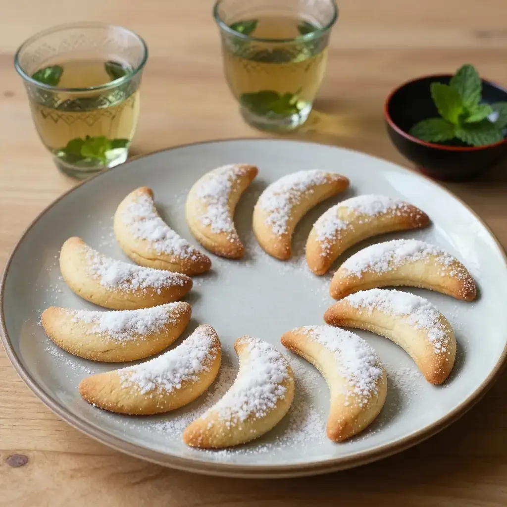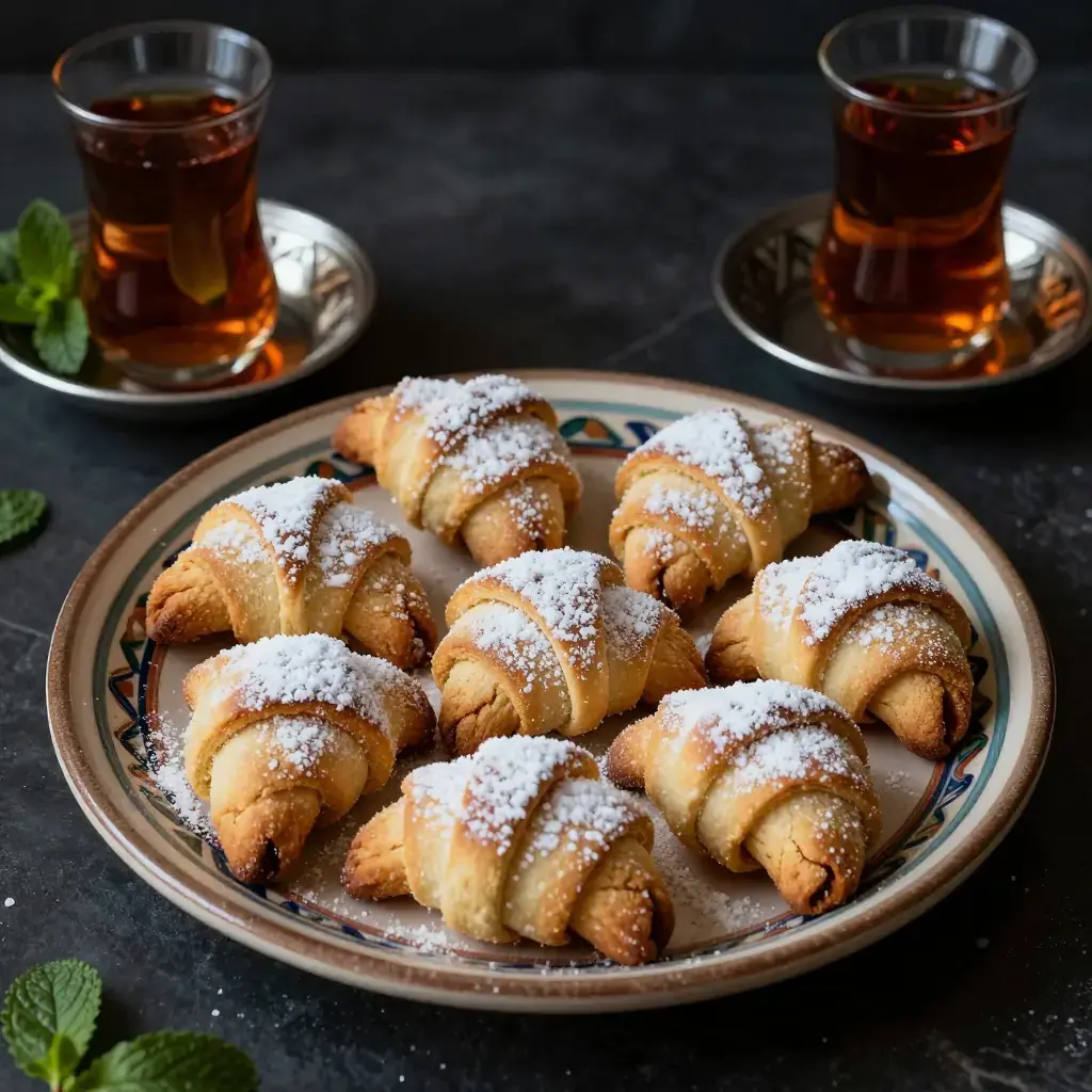 Kaab el Ghazal, 'gazelle horns,' are Morocco's most iconic teatime pastry — crescent-shaped cookies filled with spiced almond paste and barely dusted with icing sugar. They appear on every Moroccan table at Eid and during Ramadan.