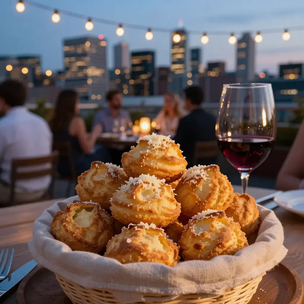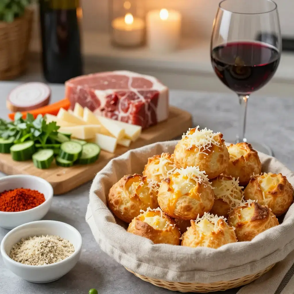 Gougères are the beloved choux pastry puffs of Burgundy, traditionally served warm alongside an aperitif or wine tasting. Made with nutty Comté or Gruyère, they are light, hollow, cheesy, and deeply addictive — the quintessential French late-night snack and dinner-party opener.