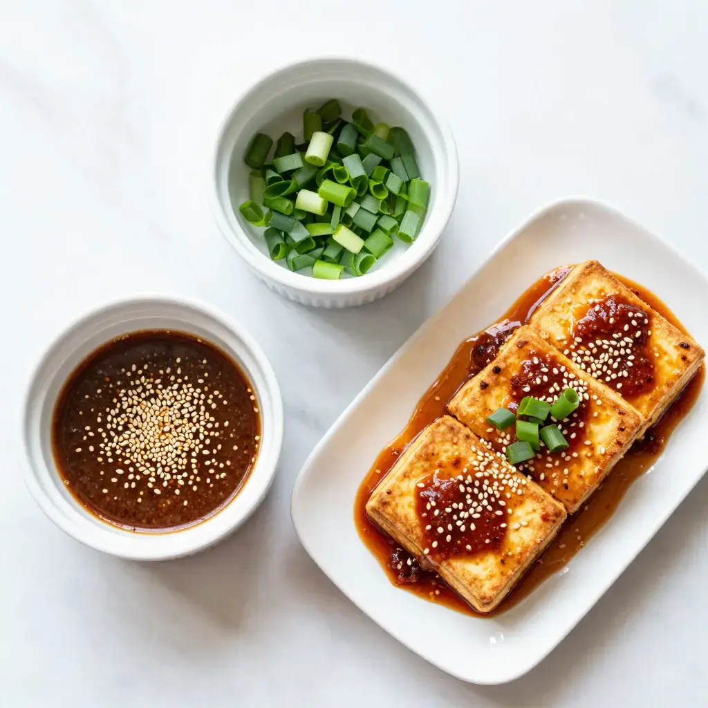 Heat oil in a non-stick skillet over medium-high heat. Fry tofu slabs in a single layer for 3–4 minutes per side until golden and slightly crisp. Work in batches if needed. Remove and cool slightly.