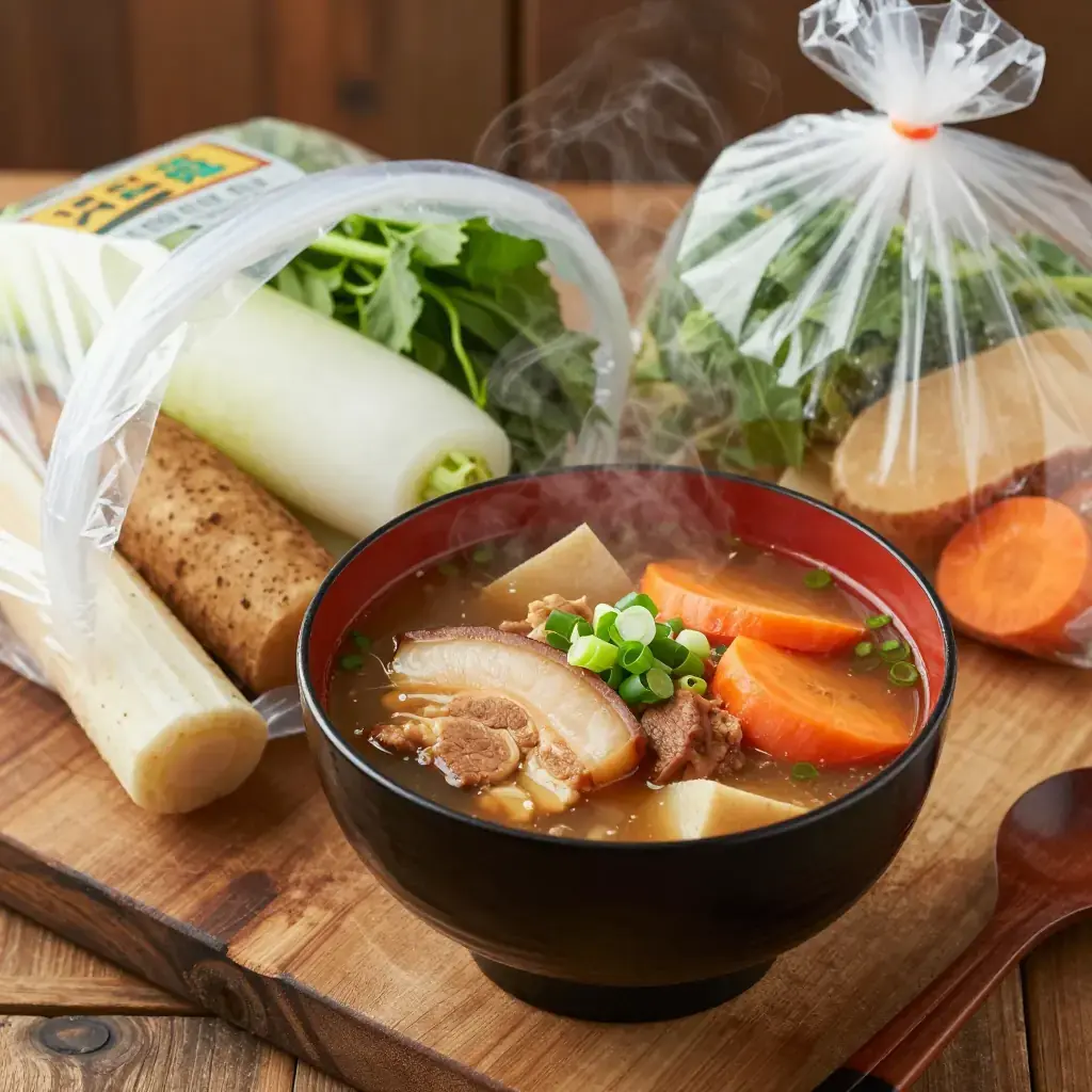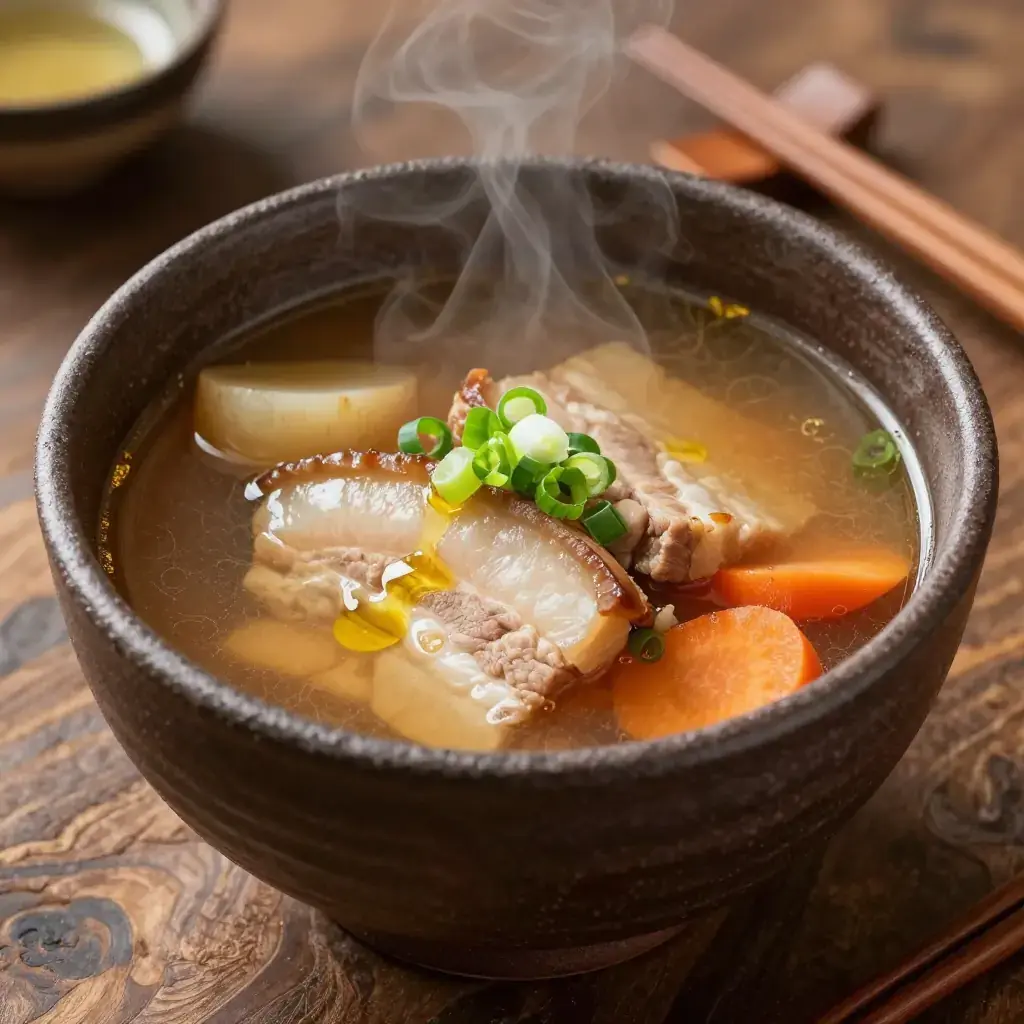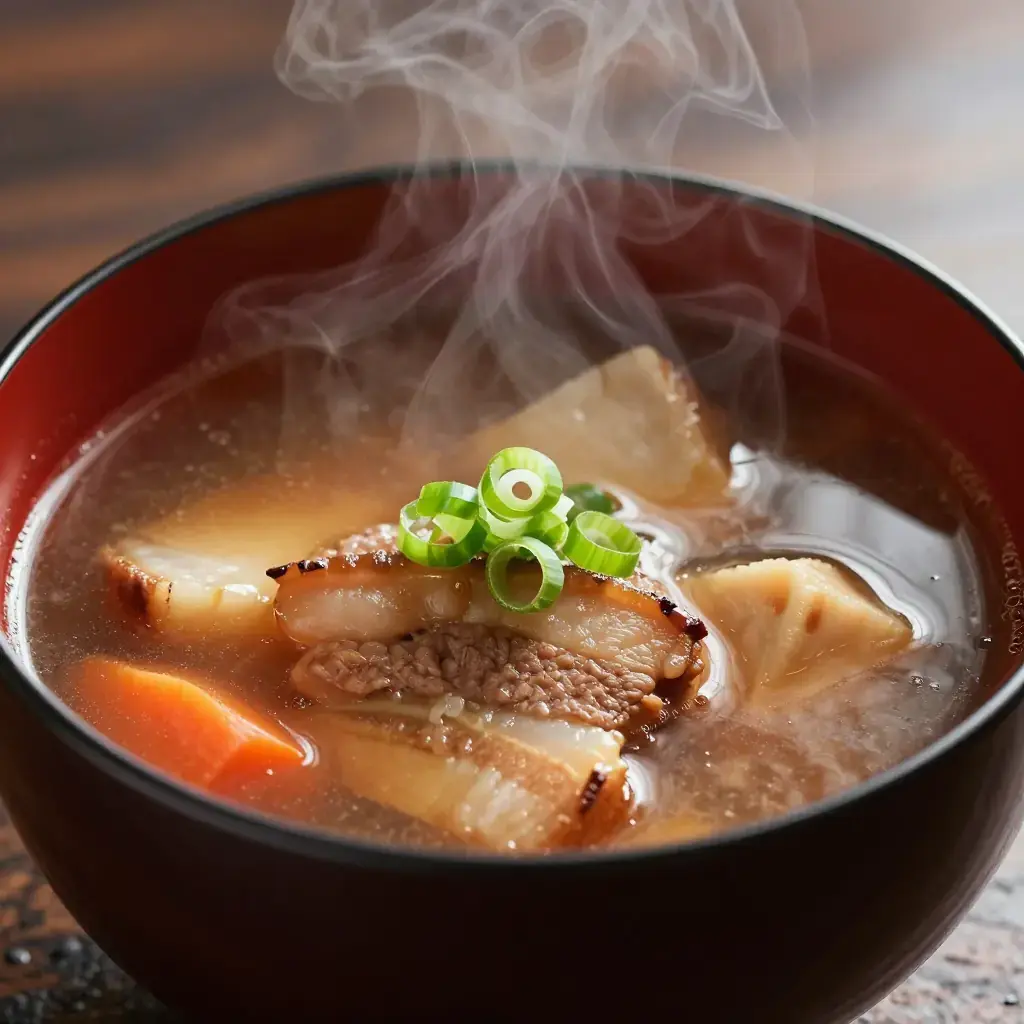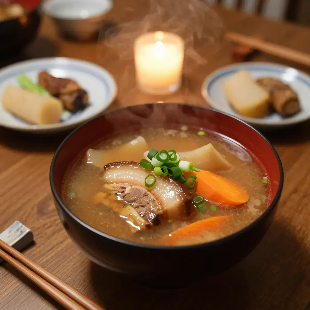 Tonjiru is Japan's most deeply satisfying miso soup — enriched with sliced pork belly and an abundance of root vegetables slow-cooked until their sweetness melds into a rich, warming broth. Every Japanese household has its own version, and it is considered the ultimate cold-weather one-pot meal.
