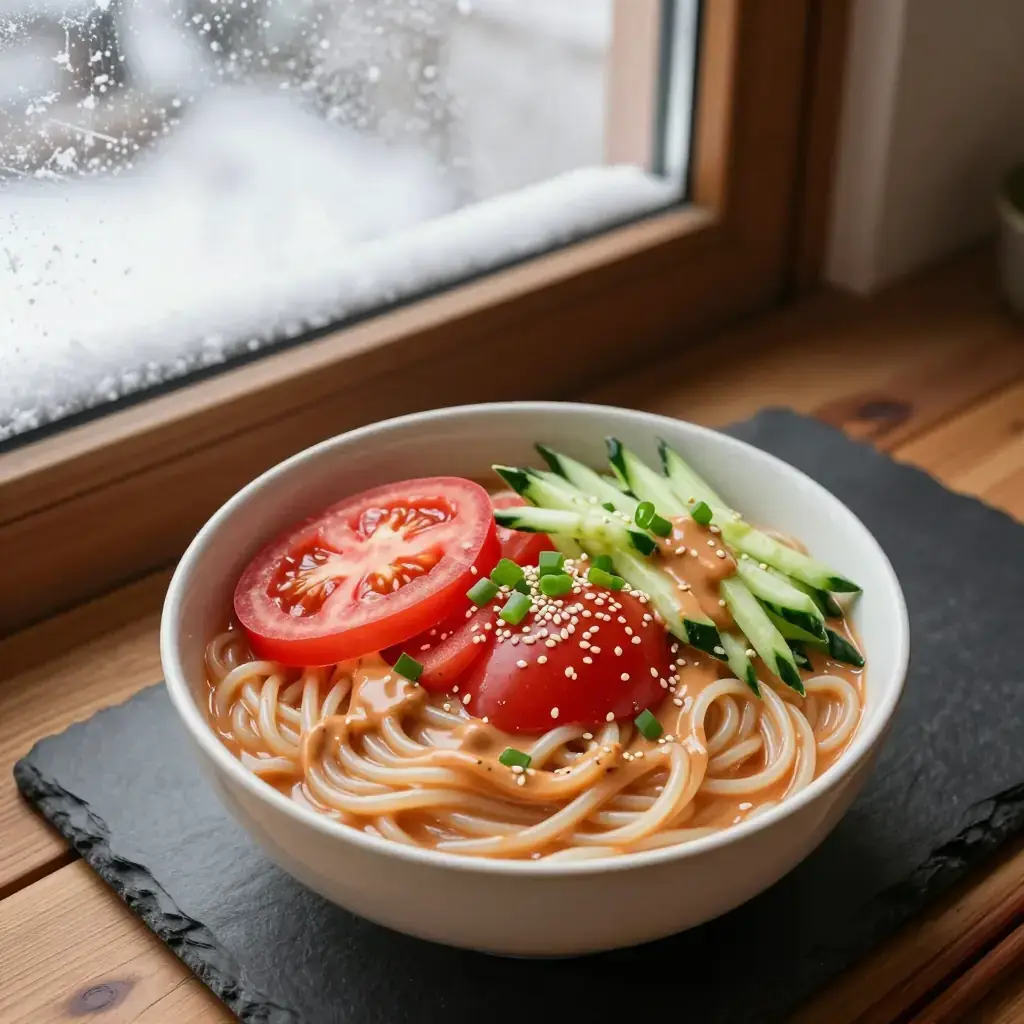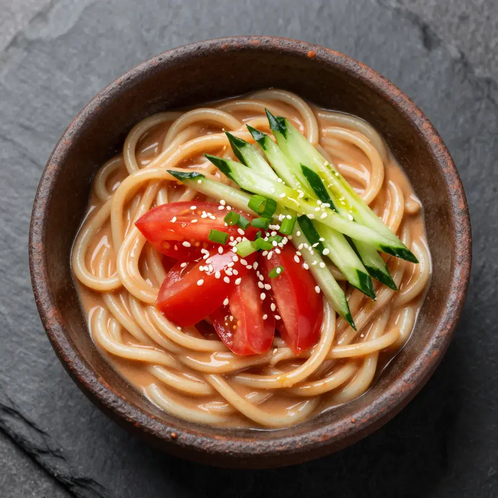 Cold tomato noodles are one of Hunan's favourite summer street foods, sold from wheeled carts throughout Changsha's old city. Ripe tomatoes are blended with sesame paste and Hunan's signature sour-spicy seasoning, then tossed with silky hand-pulled noodles and served cold — a refreshing modern twist on the province's bold flavour profile.