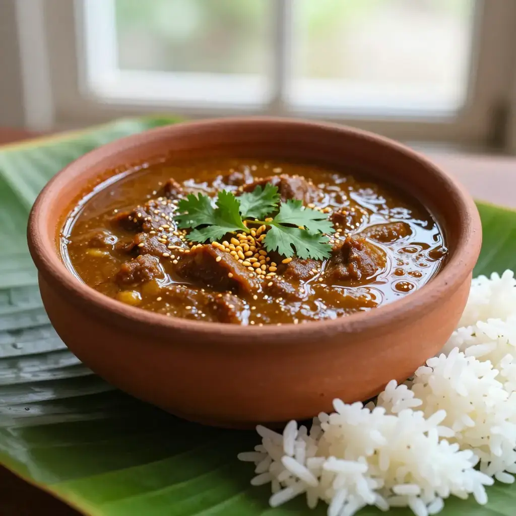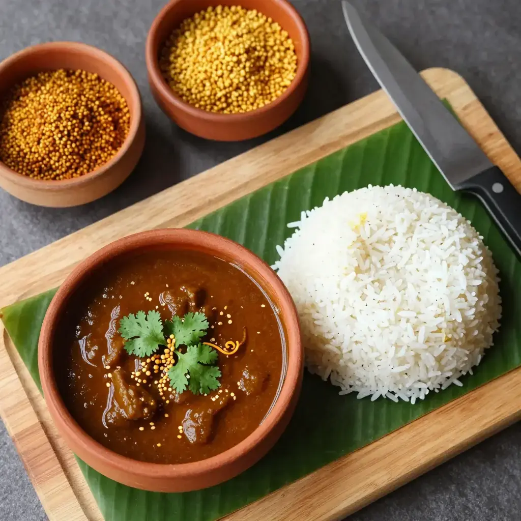 Cook's Notes: The sambar powder is non-negotiable — make your own or buy a quality Tamil brand (MTR or Aachi are reliable). Sesame oil gives the dish its authentic flavour; do not substitute with refined oil. Leftover kuzhambu thickens overnight and is even better the next day.
