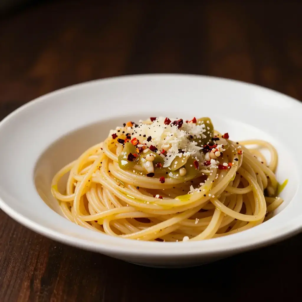 Drain the pasta but don't rinse it (the starch on the pasta helps the sauce stick). Add the hot pasta directly to the garlic oil mixture. Toss it. The pasta water will emulsify with the oil and create a silky sauce. This is the magic part.