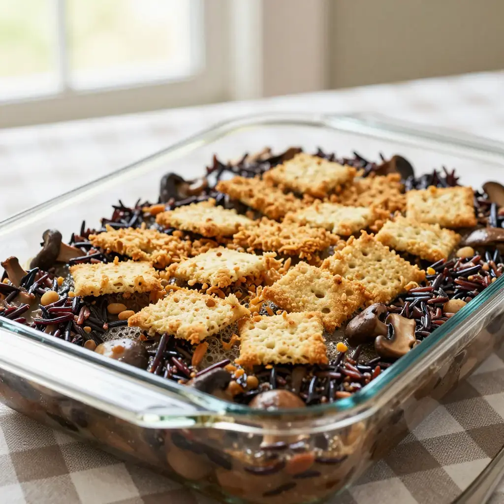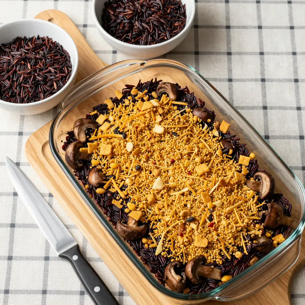 In Minnesota, a casserole is a hotdish — and wild rice hotdish is perhaps the most quintessentially Minnesotan of them all. Native wild rice harvested from the lake country of northern Minnesota mingles with earthy mushrooms, chicken, and a creamy sauce beneath a buttery cracker crust. It appears at church suppers, cabin weekends, and holiday tables across the state.