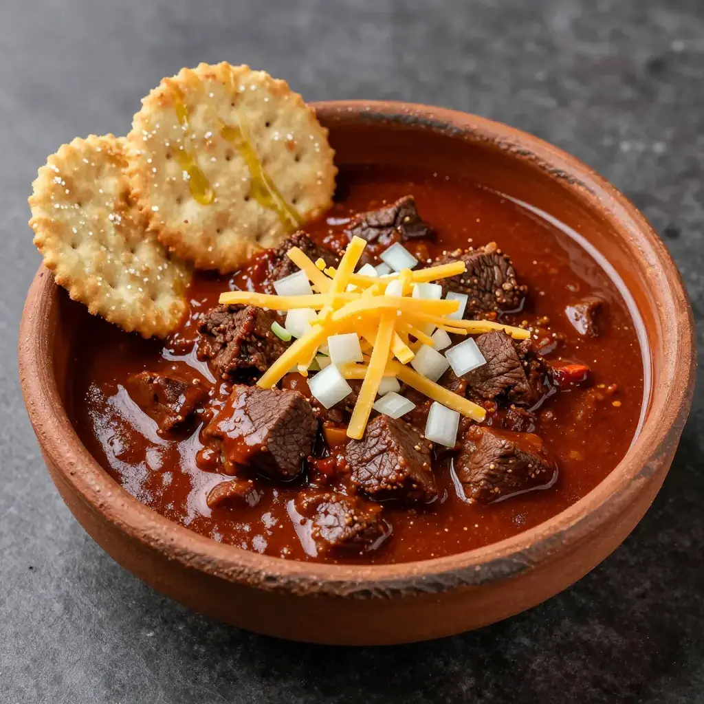 Cook's Notes: Masa harina is the traditional thickener: whisk 2 tbsp with a little cold water and stir in during the last 30 minutes if needed. Texas purists serve chili over saltines or with a side of grated longhorn cheddar and diced onion. The chili improves dramatically overnight — it is always better the second day.