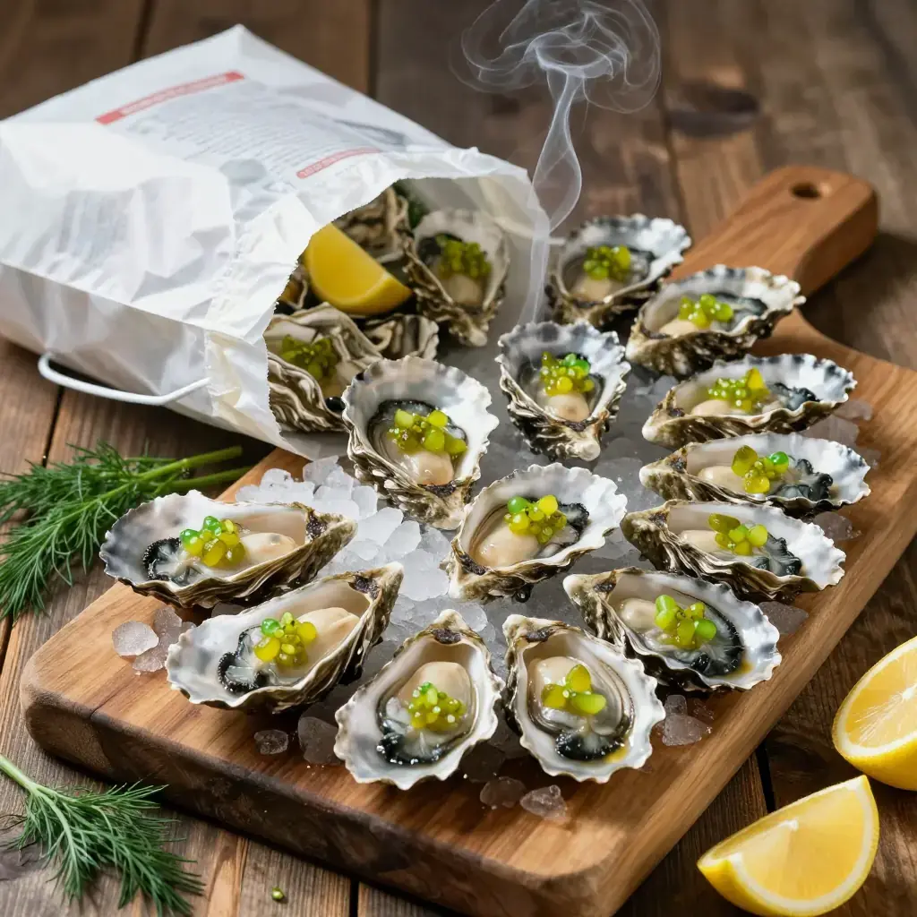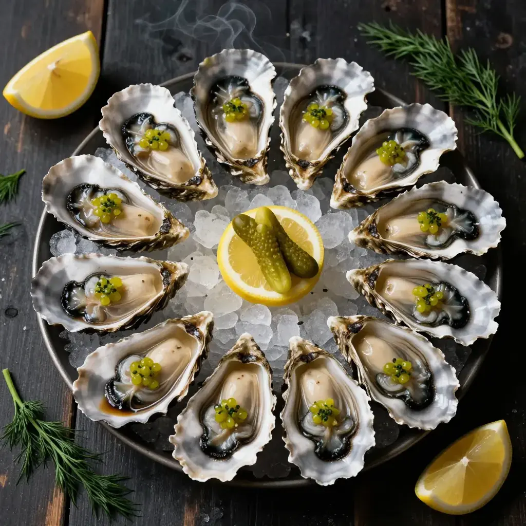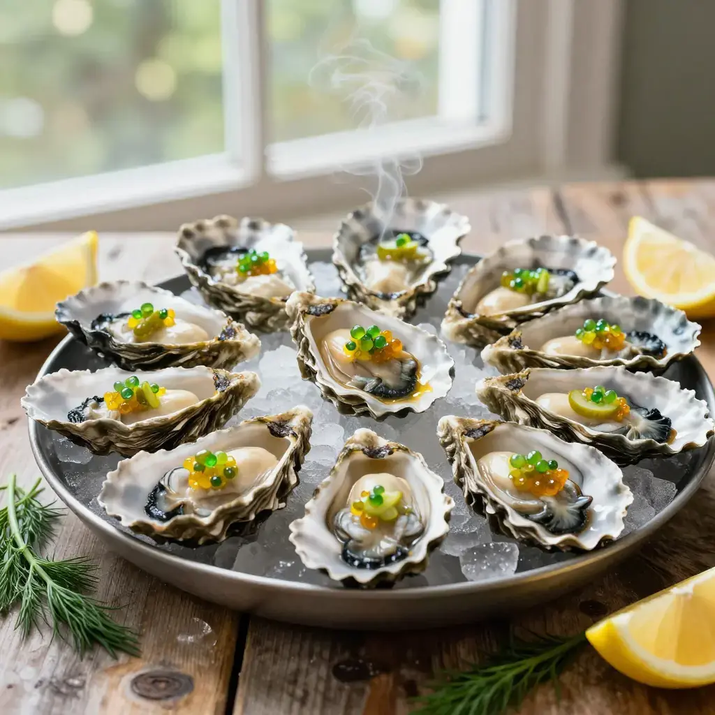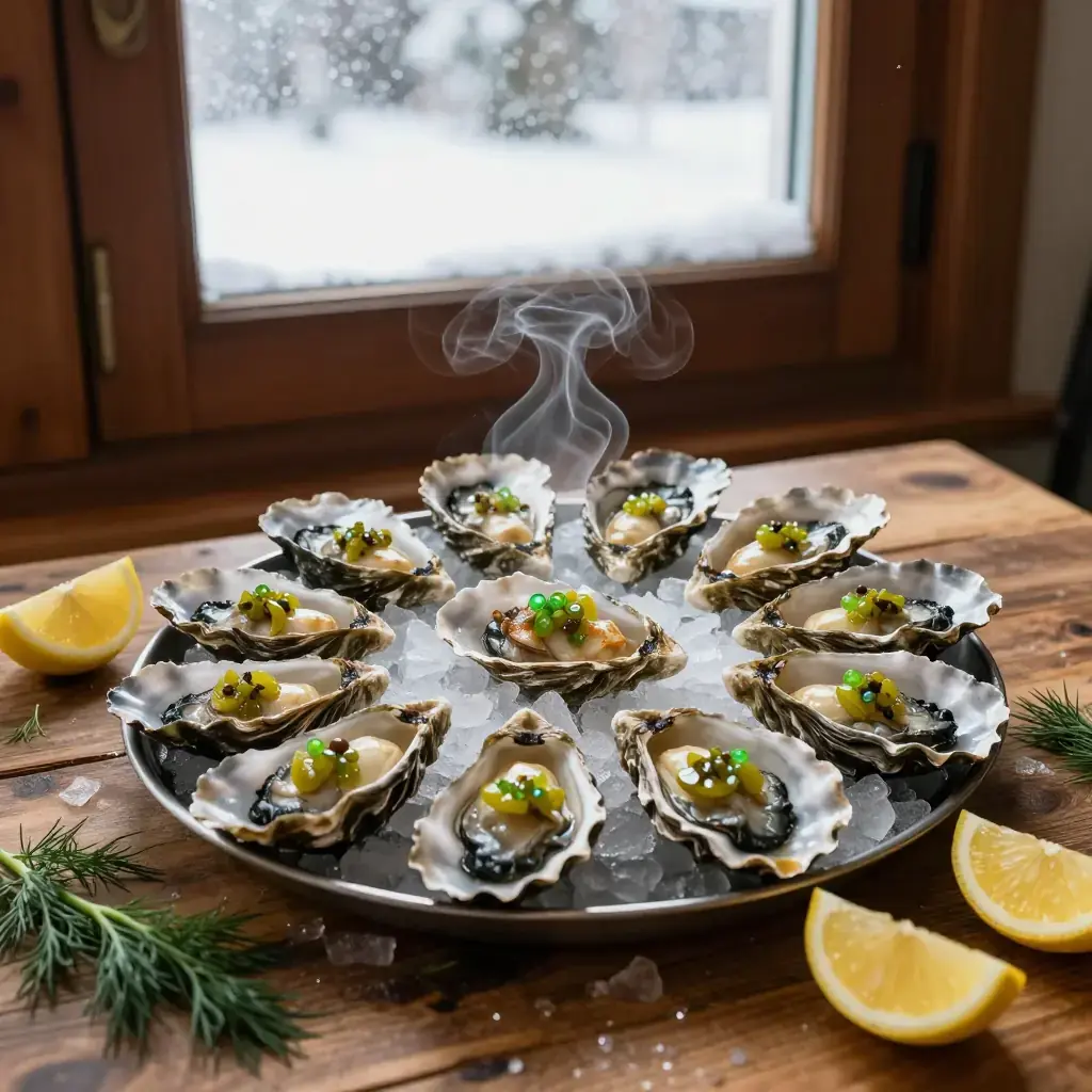 # Alder-Smoked Oysters with Pickled Cucumber Mignonette The Pacific Northwest's oyster culture stretches from Willapa Bay in Washington to Netarts Bay in Oregon, with varieties like Kumamoto, Pacific, and Olympia oysters raised in cold, clean waters. Hot-smoking over native alder wood — the same wood Indigenous peoples of the region have used for centuries to preserve salmon — gives the oysters a gentle smoke that complements rather than overwhelms their briny sweetness. Serves: 4 ## Ingredients **For the oysters:** - 24 fresh Pacific Northwest oysters, scrubbed - 2 cups (480ml) alder wood chips, soaked in water 30 minutes - 2 tbsp (30g) unsalted butter, melted - 1 tsp (3g) smoked paprika - Flaky sea salt **For the pickled cucumber mignonette:** - 1 Persian cucumber, finely brunoise (about 5mm / 1/4 in dice) - 2 tbsp (30ml) champagne vinegar - 1 tbsp (15ml) rice wine vinegar - 1 shallot, finely minced - 1 tsp (4g) sugar - 1/2 tsp (1g) cracked black pepper - 1 tbsp (5g) fresh dill, minced ## Instructions 1. Make the mignonette at least 1 hour ahead: combine cucumber, both vinegars, shallot, sugar, and black pepper in a small bowl. Stir to dissolve sugar. Refrigerate. Fold in fresh dill just before serving. 2. Prepare a kettle grill or smoker for indirect heat, targeting 175-190°C (350-375°F). Drain alder chips and scatter over hot coals, or add to a smoker box on a gas grill. 3. Shuck the oysters, leaving them in the deeper half-shell with their liquor. Arrange on a grill rack. 4. Brush each oyster lightly with melted butter and dust with a pinch of smoked paprika. 5. Close the grill lid and smoke the oysters 6-8 minutes, until their edges just begin to curl and the liquor bubbles gently. Do not overcook — they should remain plump and slightly translucent at the center. 6. Transfer to a platter lined with crushed ice or rock salt to keep level. Finish with a tiny pinch of flaky salt on each. 7. Spoon about 1 tsp of mignonette over each hot oyster and serve immediately. **Cook's Notes:** Freshness is everything — buy oysters the day you plan to cook them. The pickled cucumber mignonette also works beautifully with raw oysters on the half-shell. For a richer finish, substitute the butter with a compound of softened butter mixed with minced garlic, lemon zest, and herbs.Images