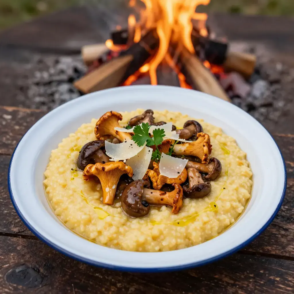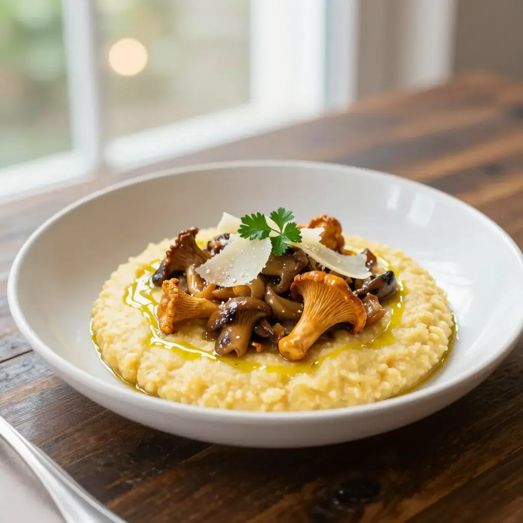 # Foraged Chanterelle and Morel Ragout on Creamy Polenta The forests of the Cascades and the Olympic Peninsula yield some of the finest wild mushrooms in North America — golden chanterelles fruiting in Pacific silver fir stands after autumn rains, and morels appearing in spring wherever last summer's wildfires burned. This vegetarian ragout celebrates that foraging tradition with a simple preparation that lets the mushrooms' earthy complexity carry the dish. Serves: 4 ## Ingredients **For the mushroom ragout:** - 350g (12 oz) fresh chanterelle mushrooms, torn into pieces - 200g (7 oz) fresh morel mushrooms (or dried morels, rehydrated) - 3 tbsp (45g) unsalted butter - 1 tbsp (15ml) olive oil - 3 shallots, finely sliced - 4 garlic cloves, minced - 120ml (1/2 cup) dry white wine - 120ml (1/2 cup) vegetable stock - 3 tbsp (45ml) heavy cream - 1 tbsp (5g) fresh thyme leaves - 1 tbsp (5g) fresh tarragon, chopped - Salt and black pepper **For the creamy polenta:** - 200g (1 cup) coarse-ground polenta - 960ml (4 cups) water or vegetable stock - 240ml (1 cup) whole milk - 60g (2 oz) Parmesan, finely grated - 30g (2 tbsp) unsalted butter - Salt **To finish:** - 30g (1 oz) Parmesan, shaved - Fresh flat-leaf parsley - Extra virgin olive oil ## Instructions 1. Bring water (or stock) and milk to a boil in a heavy saucepan. Whisk in polenta in a steady stream. Reduce heat to low and cook, stirring frequently, 25-30 minutes until thick and creamy. Stir in Parmesan, butter, and season well with salt. 2. Meanwhile, heat butter and olive oil in a large skillet over high heat. Add mushrooms in a single layer — do not stir for 2-3 minutes to allow browning. Season with salt and toss. 3. Reduce heat to medium. Add shallots and cook until softened, 3 minutes. Add garlic and thyme, cook 1 minute. 4. Pour in white wine and let reduce by half, about 2 minutes. Add stock and cream. Simmer until the sauce coats the mushrooms lightly, 4-5 minutes. Stir in tarragon and adjust seasoning. 5. Spoon polenta into warm wide bowls. Top with mushroom ragout, shaved Parmesan, parsley leaves, and a drizzle of olive oil. **Cook's Notes:** If using dried morels, soak in warm water for 20 minutes; strain and reserve the soaking liquid to add to the stock for deeper flavor. Trumpet royale or maitake mushrooms make excellent additions or substitutes when morels are out of season.Images