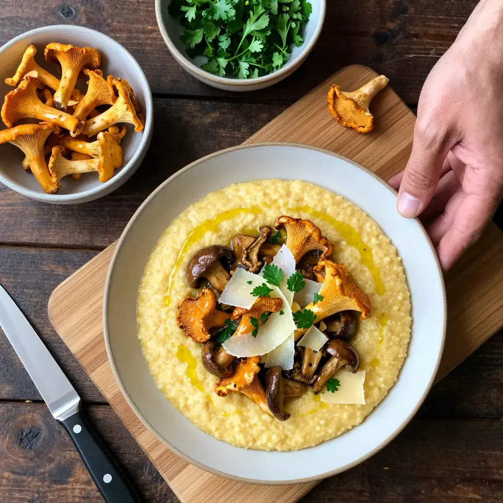 Foraged Chanterelle and Morel Ragout on Creamy Polenta