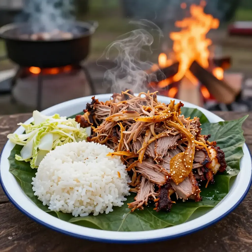 Cook's Notes: The long low cook time is essential — don't rush it. Ti leaves are traditional and available at Hawaiian or Asian grocery stores; banana leaves work well as a substitute. Leftover kalua pork is exceptional in fried rice.