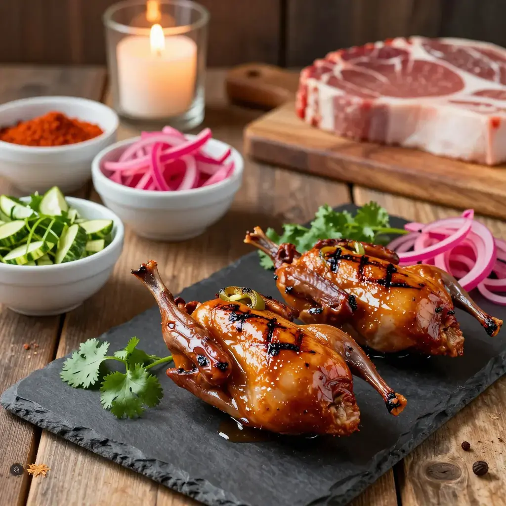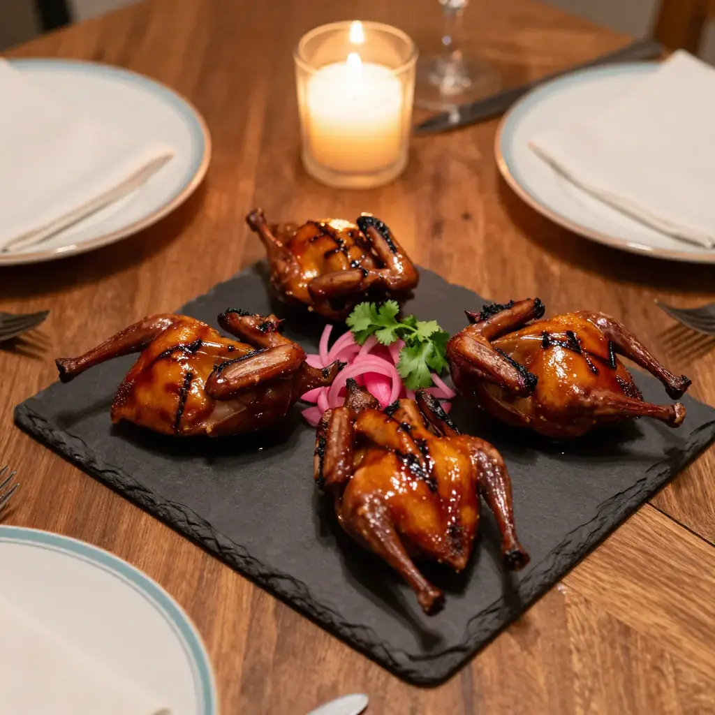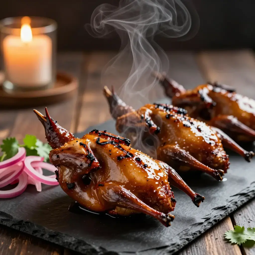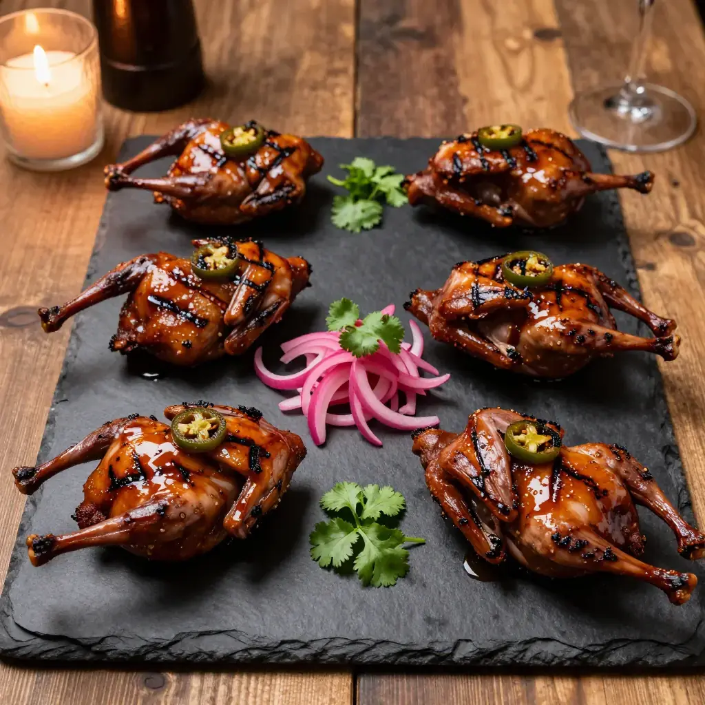 Smoked quail is a hallmark of the Texas Hill Country dinner-party table, where the tradition of hunting ranch game meets Tex-Mex flavors. Quail are rubbed with a cumin-and-ancho spice blend, low-smoked over mesquite or pecan wood, then finished with a sticky jalapeño-honey glaze that caramelizes over high heat. They make an elegant, conversation-starting centerpiece.