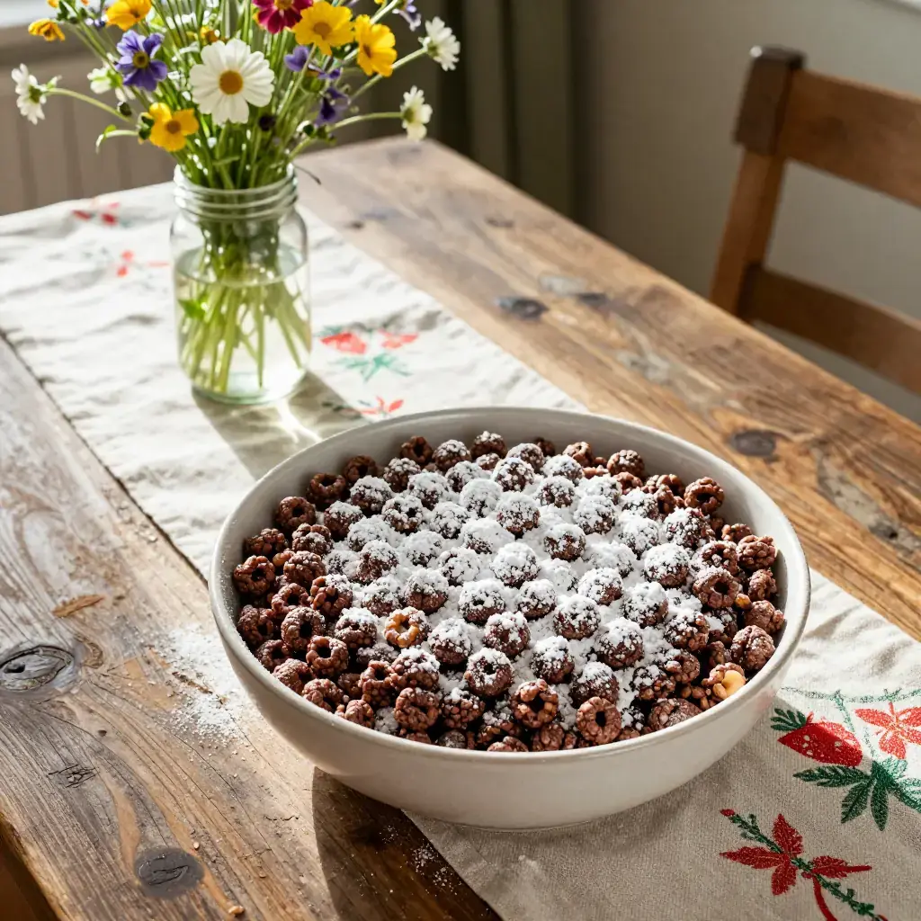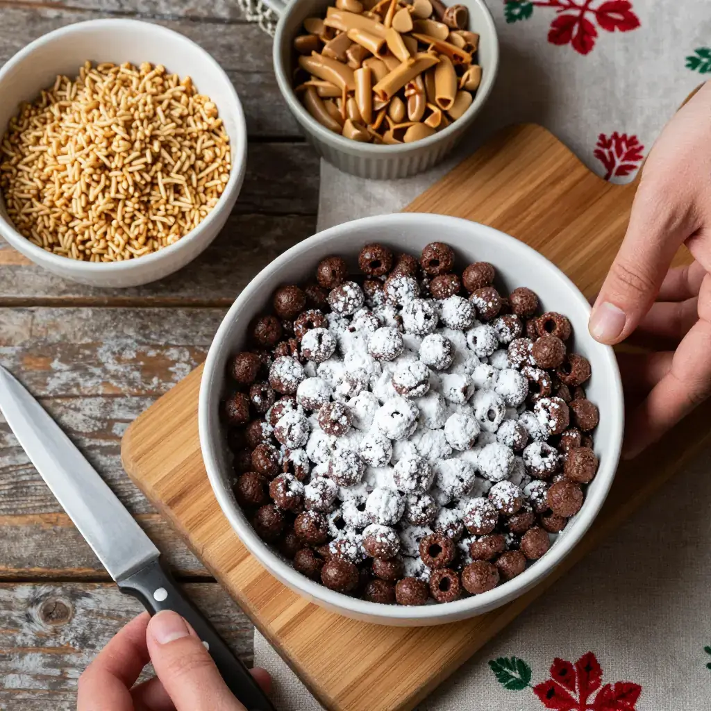 Cook's Notes: For holiday variations, add festive M&Ms, crushed pretzels, or peppermint bark pieces along with the powdered sugar. A pinch of flaky sea salt over the finished batch cuts the sweetness beautifully. Corn Chex or a mix of Corn and Rice Chex works equally well.