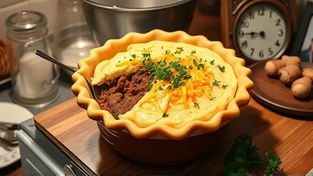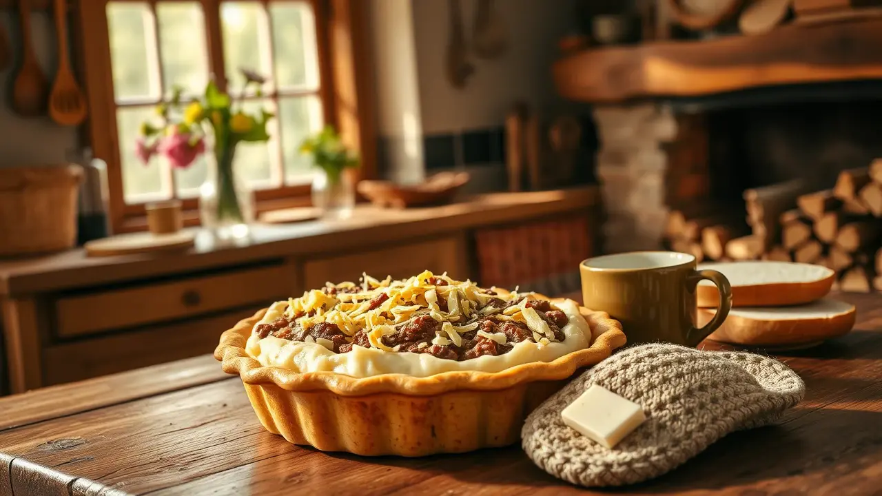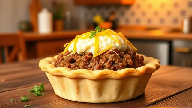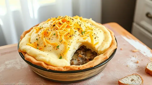 # Souper Meat and Potatoes Pie 🥧🥔 This hearty dish is a warm hug on a plate, combining savory meat and creamy potatoes for a comforting meal. Ideal for busy weeknights or special gatherings, it’s as satisfying as it is simple to make. Plus, this recipe is versatile—you can use any leftover soup you have on hand for an added twist! Consider serving it with a side of steamed veggies or a crisp salad for a complete meal. 🥗✨ ## Ingredients ### For the base - 1/2 cup of your favorite condensed soup (cream of mushroom, chicken, etc.) - 1 pound of ground beef (or turkey for a lighter option) - 1/2 onion, finely chopped - 1 egg - 1 cup of bread crumbs - 1/4 cup of fresh parsley, chopped - Salt and pepper to taste ### For the topping - 2 cups of mashed potatoes (store-bought or homemade) - 1/2 cup of remaining soup (same as above) - 1 cup of shredded cheese (cheddar, mozzarella, or your choice) ## Instructions 1. **Prepare the filling**: In a large bowl, mix the soup, ground beef, chopped onion, egg, bread crumbs, parsley, and seasonings until fully combined. > 👩🍳 For best results, use fresh ingredients for maximum flavor. Ground turkey makes a great substitute for beef if you're looking for a healthier option! 2. **Press into the pie plate**: Firmly press the meat mixture into a 9-inch pie plate, creating an even layer. 3. **Bake it**: Bake in a preheated oven at 350°F (175°C) for 25 minutes. 4. **Spoon off fat**: Once baked, carefully spoon off any excess fat from the meat filling. 5. **Top it off**: Spread the mashed potatoes over the meat mixture, followed by the remaining soup and sprinkle the cheese on top. 6. **Final bake**: Bake for an additional 10 minutes or until the cheese is melted and bubbly. > 🔥 Note: Keep an eye on the cheese; you want it golden but not burnt! ## Variations - **Vegetarian**: Substitute ground beef with lentils or a mixture of mushrooms and black beans. This keeps the pie hearty while being meat-free! 🌱 - **Spicy**: Add diced jalapeños or a splash of hot sauce to the meat mixture for an extra kick. - **Loaded baked potato style**: Mix in some cooked bacon bits and chives into the mashed potatoes for a loaded twist! 🥓 - **One-pot option**: Cook all components in a cast-iron skillet for a charming one-pot meal with easy cleanup! Whether it's a chilly evening or you just need a comfort food fix, this Souper Meat and Potatoes Pie is sure to be a delicious choice! Enjoy your meal! 🍽️❤️name