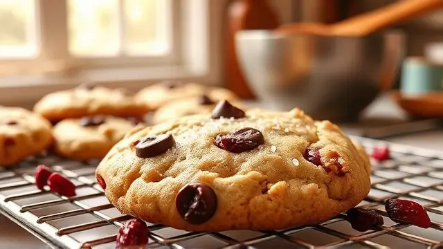 # Cranberry Chocolate Chip Cookies πͺβ€οΈ These delightful cranberry chocolate chip cookies are the perfect blend of sweet and tart, making them a wonderful treat year-round. With a chewy texture and gooey chocolate, every bite is a mouthwatering experience! Ideal for holiday gatherings, after-school snacks, or even as a cozy dessert by the fire. Pair these cookies with a glass of milk or a warm cup of tea for a delightful combo! π₯π΅ ## Ingredients ### For the cookies - 1 cup unsalted butter, softened - 1 cup brown sugar, packed - 1/2 cup granulated sugar - 2 large eggs - 2 tsp vanilla extract - 2 1/2 cups all-purpose flour - 1 tsp baking soda - 1/2 tsp salt - 1 cup dried cranberries - 1 cup chocolate chips ## Instructions 1. **Preheat your oven** to 350Β°F (175Β°C) and line a baking sheet with parchment paper. 2. In a large bowl, cream together the softened butter, brown sugar, and granulated sugar until smooth and fluffy. > π₯ Proper creaming is essential! Beat the butter and sugars for about 2-3 minutes. This incorporates air, leading to a lighter cookie texture. 3. Add the eggs one at a time, then stir in the vanilla extract until everything is well combined. 4. In another bowl, whisk together the flour, baking soda, and salt. Gradually add this dry mixture to the wet ingredients. Mix until just combined. 5. Gently fold in the dried cranberries and chocolate chips. 6. Drop spoonfuls of dough onto the prepared baking sheet, spacing them about 2 inches apart. 7. **Bake** for 10-12 minutes, or until the edges are golden but the centers are still soft and puffy. 8. Let cool on the baking sheet for a few minutes before transferring them to a wire rack to cool completely. > πͺ For chewy cookies, donβt overbake! They will continue to cook on the baking sheet after you remove them from the oven. ## Variations - **Nutty Addition**: Feel free to add 1/2 cup of chopped nuts such as walnuts or pecans for an extra crunch! π° - **Oatmeal Style**: Substitute 1 cup of flour with rolled oats for a heartier texture. The oats will complement the cranberries perfectly! - **Orange Zest**: Add a teaspoon of orange zest for a zesty twist that pairs beautifully with cranberries. π - **Gluten-free**: Use a 1:1 gluten-free baking flour mix. Be sure to add a little extra moisture, as gluten-free flours can be drier. Now you're ready to bake up a batch of these irresistible cookies! Enjoy indulging in your sweet creation! πͺβ¨name