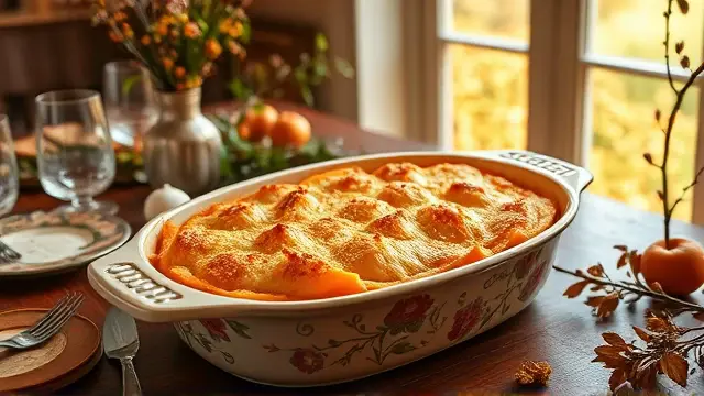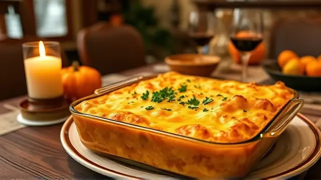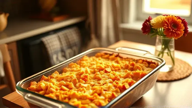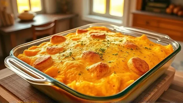 # Savory Squash Casserole 🥒🧀 This comforting Squash Casserole is a delightful side dish that's perfect for family gatherings or cozy weeknight dinners. With its creamy texture and savory flavors, it’s a fantastic way to enjoy seasonal squash! The melted sharp cheddar on top adds a deliciously cheesy finish that everyone will love. Consider serving it alongside roasted meats or as a hearty vegetarian option. 🥘✨ ## Ingredients ### Main Ingredients - 4 cups of squash, sliced (zucchini or yellow squash works great!) - 4 large eggs, beaten - 1 large onion, finely chopped - 1 teaspoon garlic salt - 1¾ cups of crushed crackers (saltines or your favorite brand) - ¾ stick of butter, melted - 2 cups of sharp cheddar cheese, grated - Salt and pepper to taste ## Instructions 1. Preheat your oven to 350°F (175°C). 2. In a large mixing bowl, combine the sliced squash, beaten eggs, chopped onion, garlic salt, crushed crackers, melted butter, and 1½ cups of grated cheddar cheese. > 🥄 Make sure to mix until everything is well combined. You want the squash evenly coated and the ingredients nicely distributed for maximum flavor! 3. Season the mixture with salt and pepper to taste. 4. Pour the mixture into a greased 9x13 inch baking dish or similar size. 5. Sprinkle the reserved ½ cup of cheddar cheese evenly over the top. 6. Bake in the preheated oven for 45 minutes, or until the top is golden brown and bubbly. > 🔥 If you notice the cheese browning too quickly, you can cover the dish with aluminum foil to prevent burning while it finishes cooking. ## Variations - **Herb-Infused**: Add a tablespoon of fresh thyme or rosemary for an aromatic twist! - **Creamy**: Incorporate a cup of sour cream or cream cheese into the mixture for an extra creamy texture. - **Spicy Kick**: Mix in some diced jalapeños or red pepper flakes for a bit of heat! 🌶️ - **Low-carb**: Replace the crackers with crushed pork rinds or almond flour for a keto-friendly version. ## Storage Tips Leftovers can be stored in an airtight container in the refrigerator for up to 3 days. Reheat in the oven or microwave until warmed through. Enjoy your delicious, homemade casserole again! 🍽️💚name